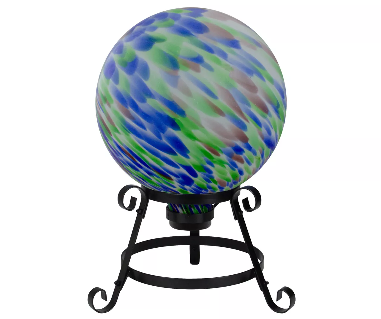 Thought to attract fairies and magical beings, gazing balls have been making gardens beautiful since the 13th century. This versatile piece is the perfect way to add style and charm to your garden. The round globe is designed with a shiny swirl finish in blues, green and purple.