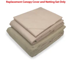 - Khaki weather-resistant fabric canopy with two-tier roof for comfortable airflow