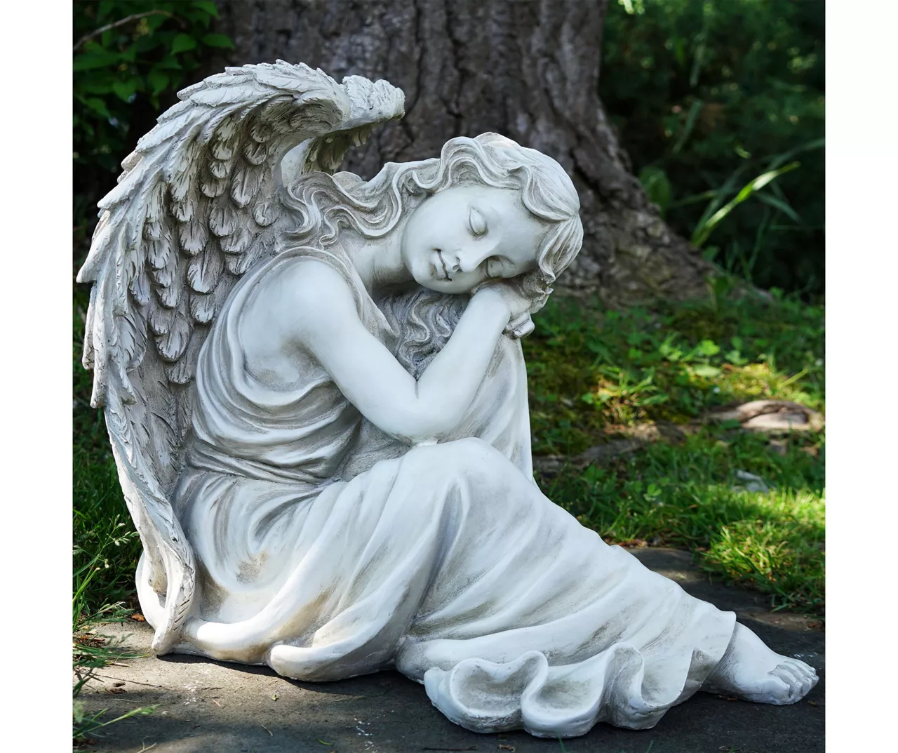 Enhance your living space with this garden statue featuring a religious resting angel in a simple style that transforms any area into your blissful hideaway. Its life-like details add a natural flair to your decor wherever it is placed. This statue will impress your guests and is sure to deliver the magic.