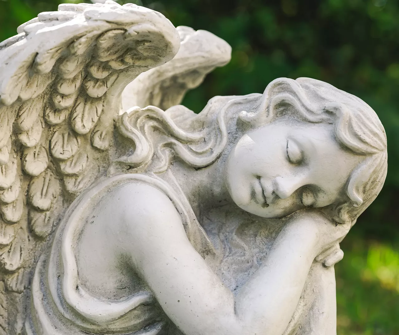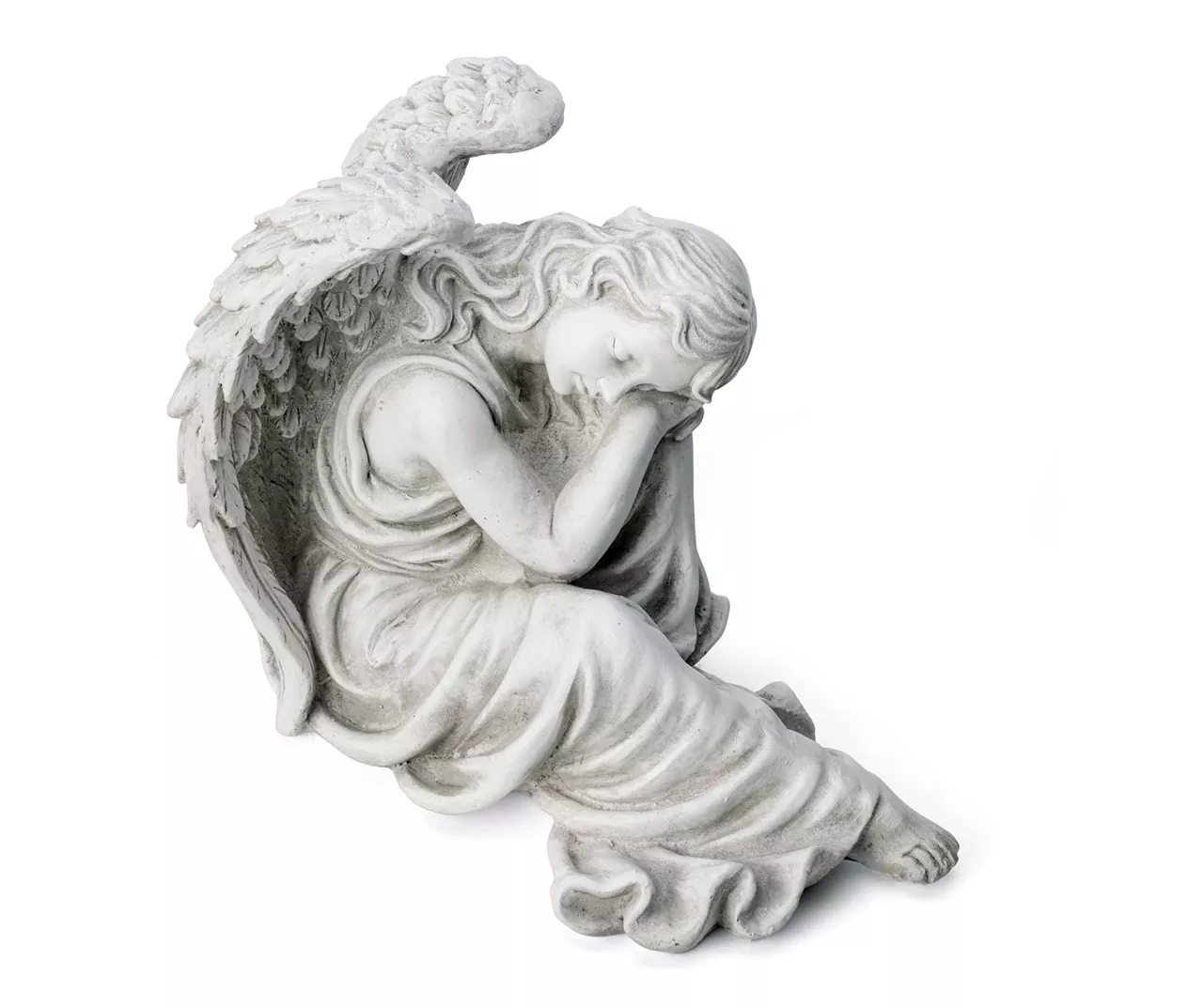 - Angel figure sculpted with detailed wings, hair, face and dress