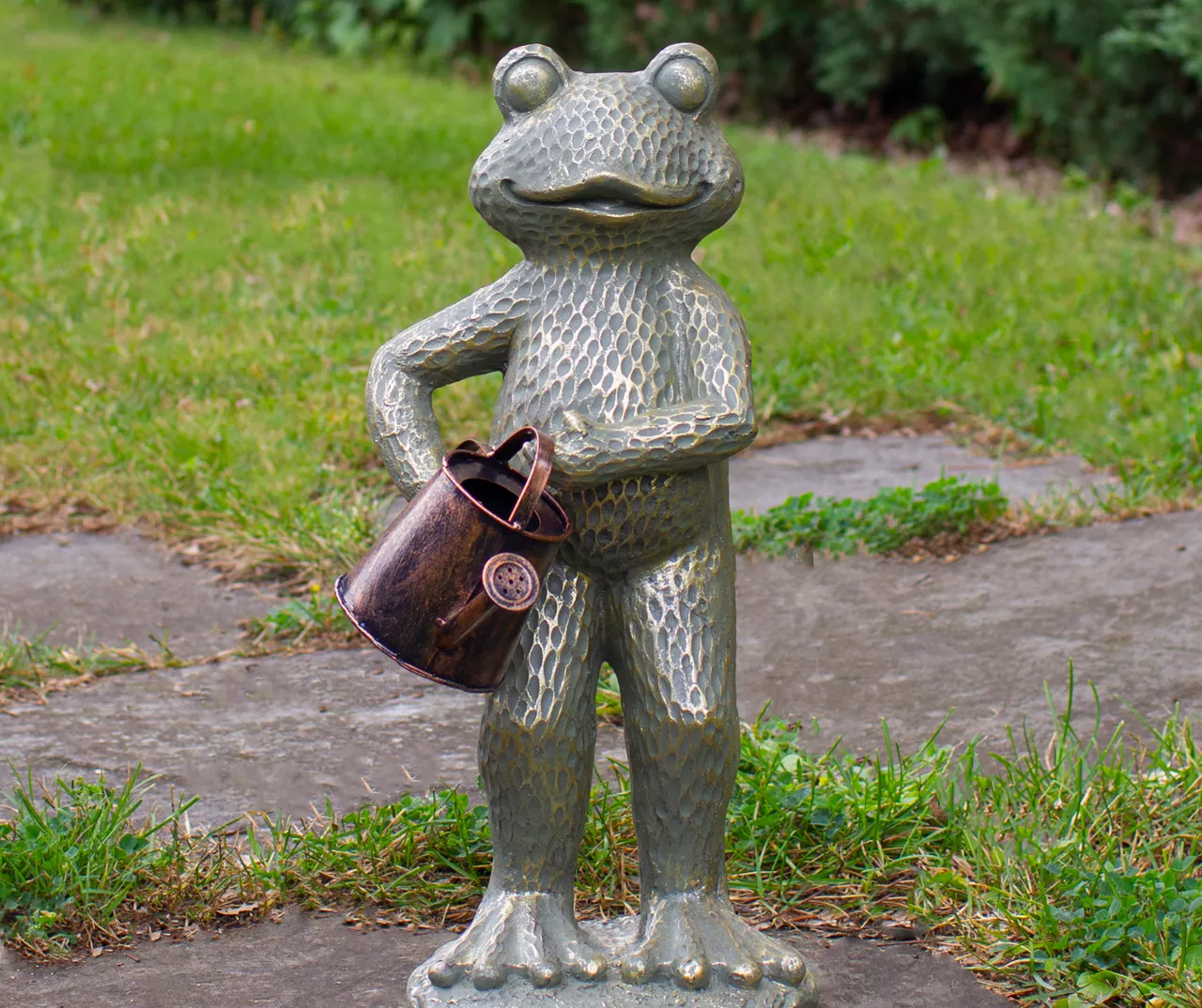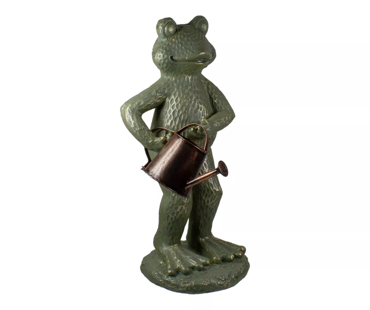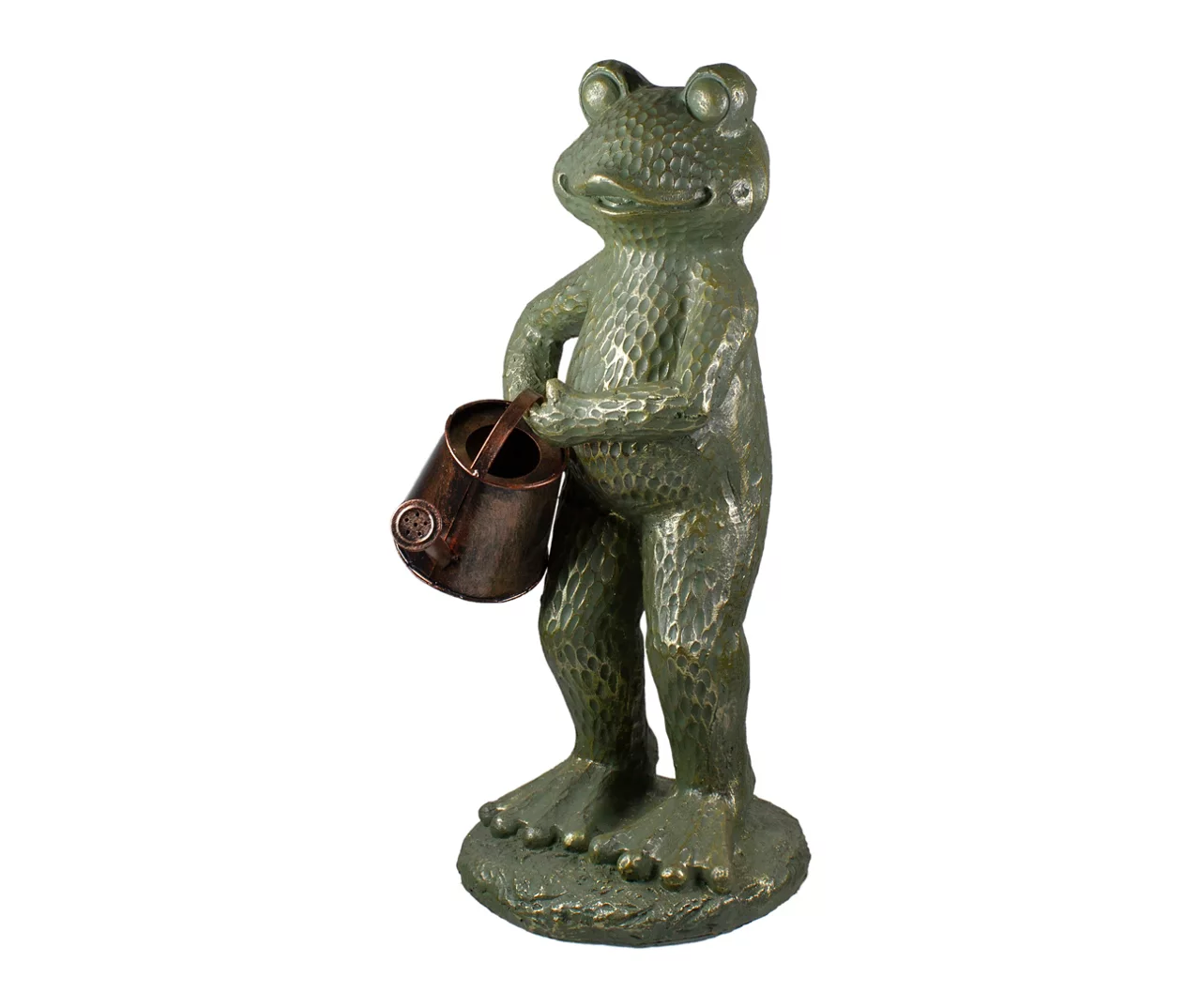 Your garden will certainly enjoy an update with the addition of this delightful frog statue. He is ready to help with the gardening chores as he is totes a watering can and happy expression. This frog statue is sure to make you smile whether you place it in your doorway, hallway, garden or gift it to a friend.