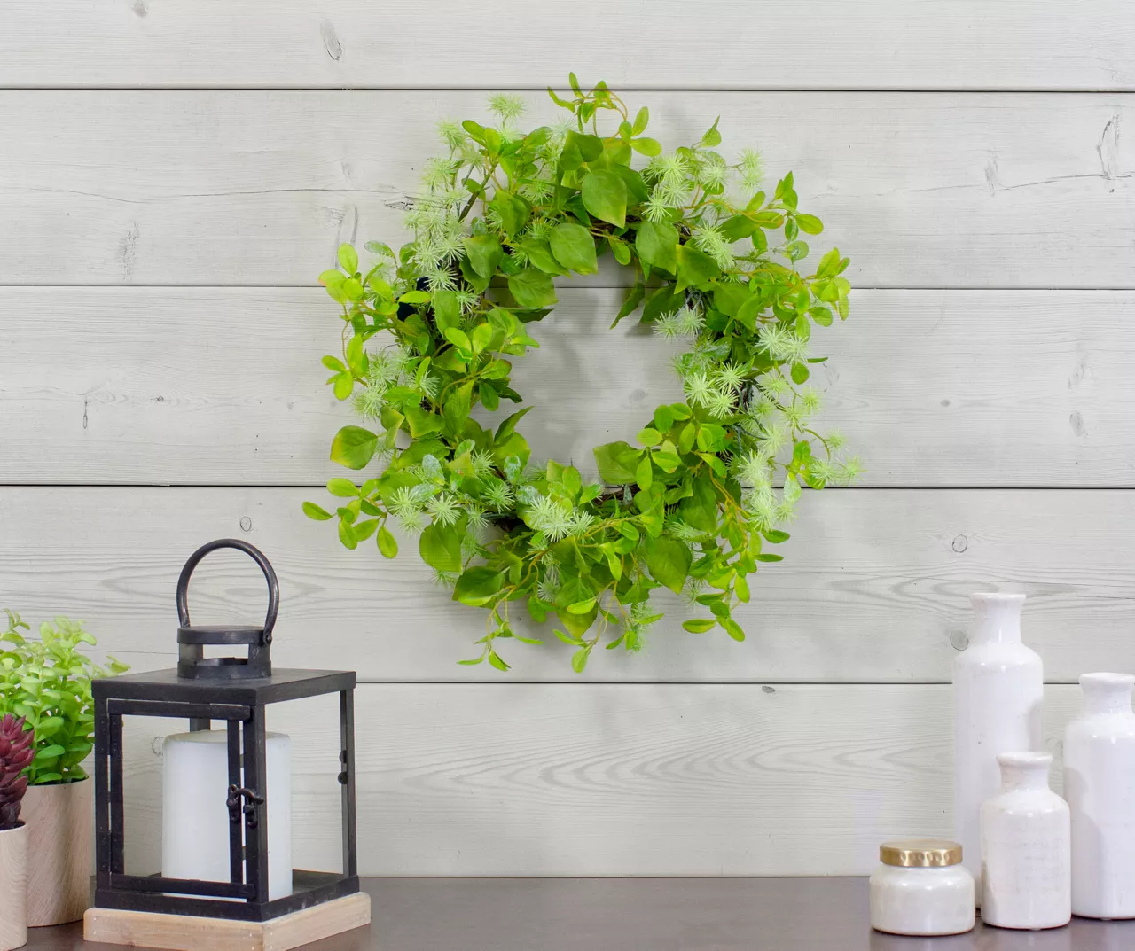 Add a touch of nature to your home with this jujube wreath. Realistic green foliage intertwined with a natural grapevine base creates a stunning springtime look for your home. It’s perfect for display in a living space, entryway or kitchen.