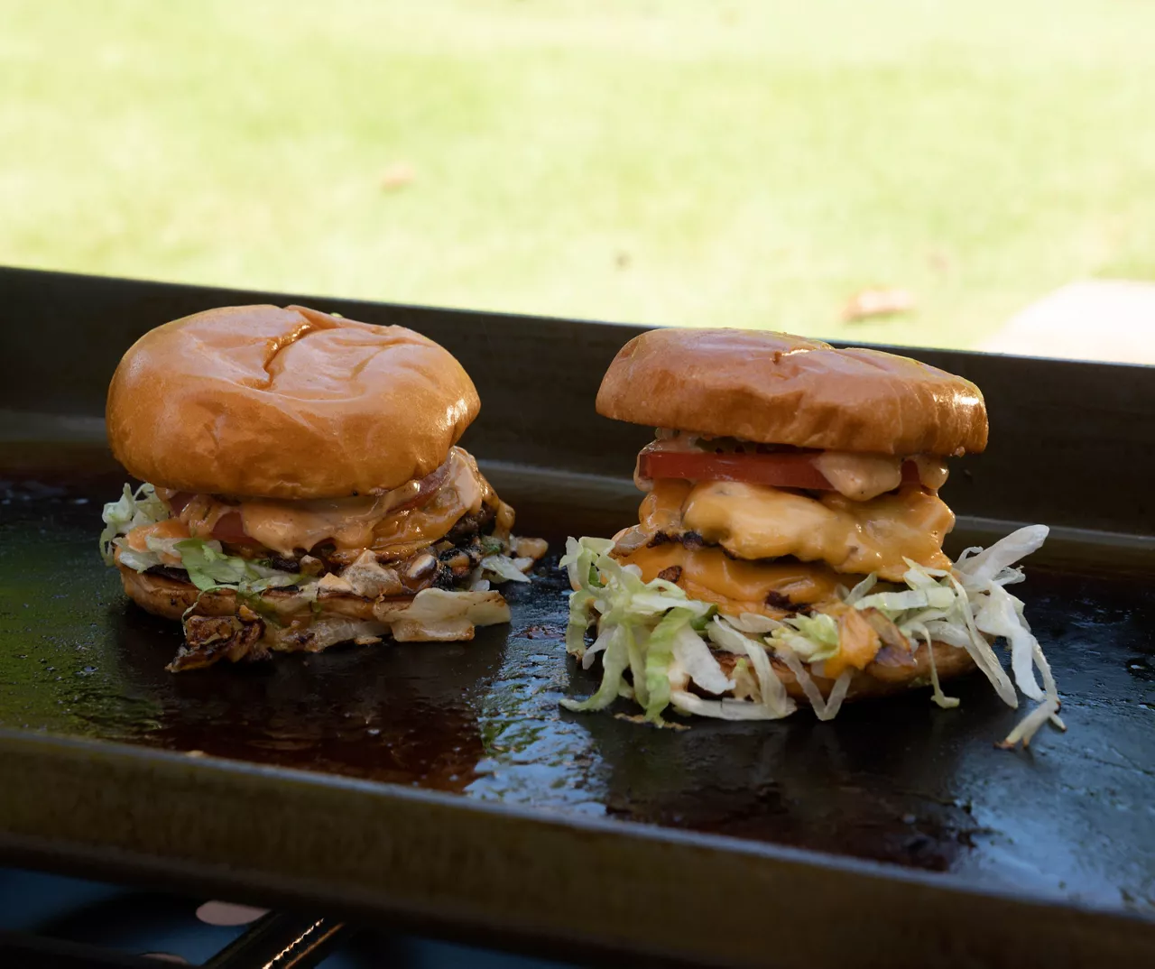 - Portable outdoor gas griddle with 2 burners