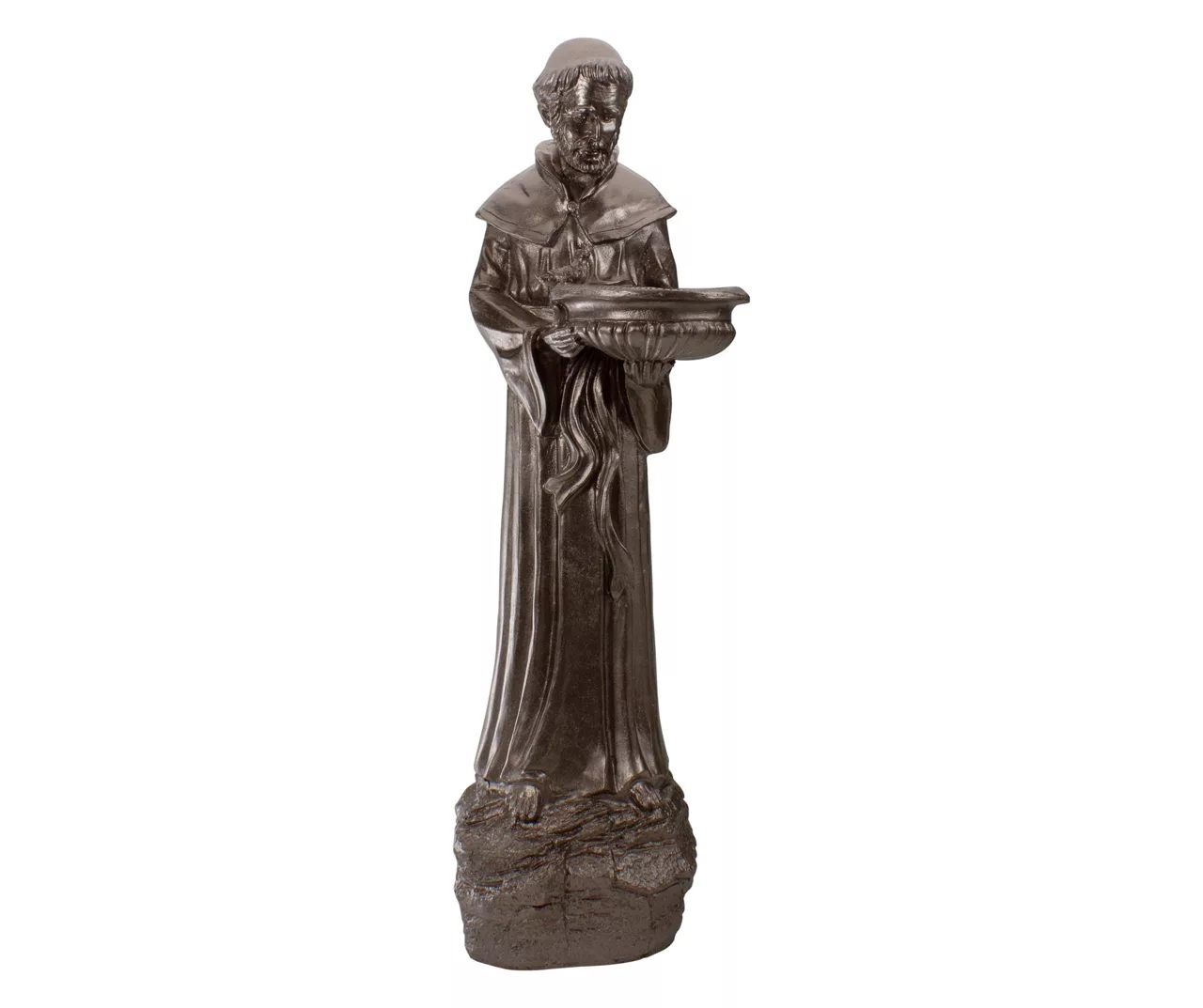- Sculpted St. Francis of Assisi design with a small basin