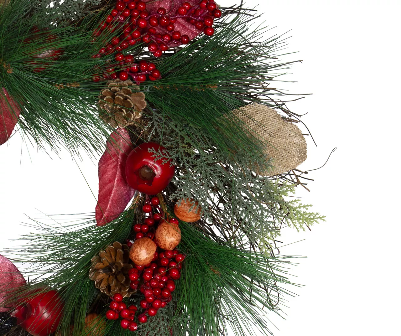 - Artificial berry, pine cone, pomegranate and kumquat accents