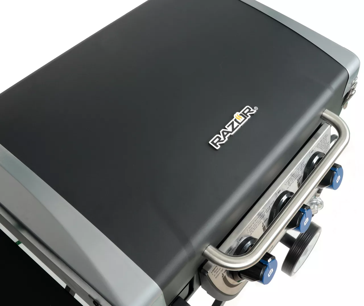 This three-burner portable Razor griddle grill has plenty of room to cook all your favorite foods, making it perfect for backyard barbecues, camping and tailgating. The stainless steel burners with a total 30,000 BTUs of heat easily come to life with push and turn ignition. The large capacity, pre-seasoned griddle is able to cook up to 31 burgers at a time, fry up some eggs, sizzle some bacon or even do stir fry. The steel lid protects and shelters your savory meal from unexpected, incoming weather while steaming foods or melting cheeses. The side shelf offers extra space for food preparation as the secure front access drain and cup offers easy grease disposal. Versatile surface for cooking breakfast, lunch and dinner. Unique mobile cart design makes it easy to fold for storage or transportation.