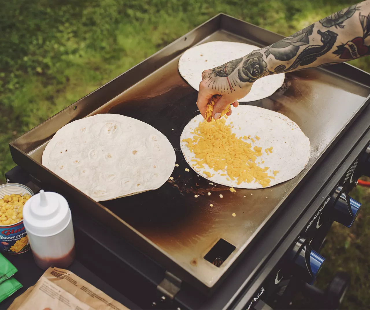 - Thick, rolled steel pre-seasoned cooking griddle top