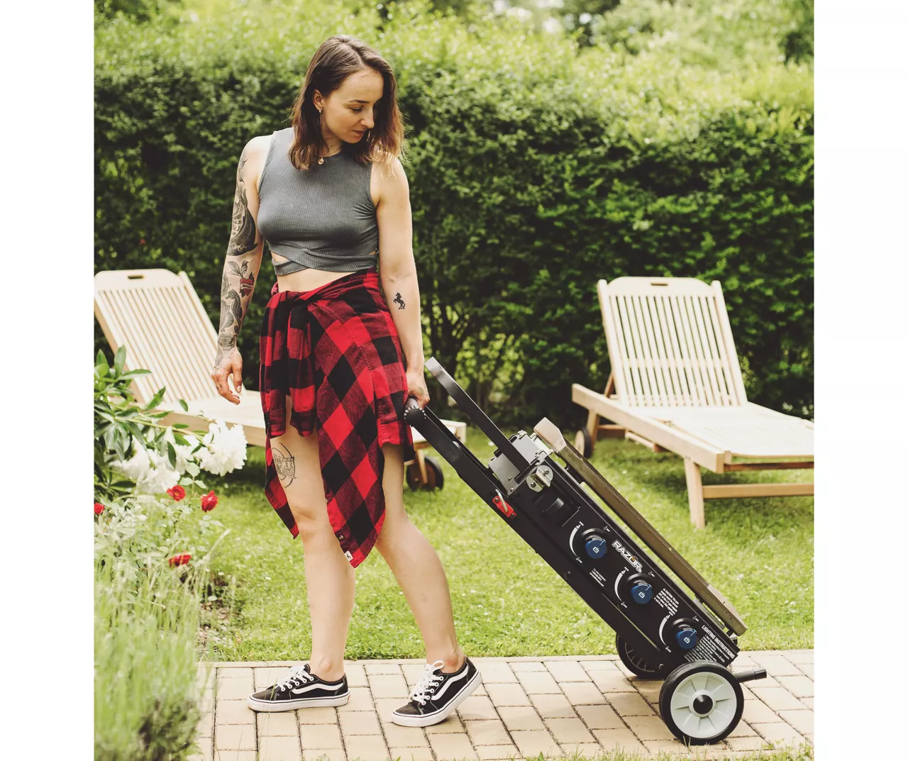- Foldable cart design with 2 wheels for easy mobility and storage