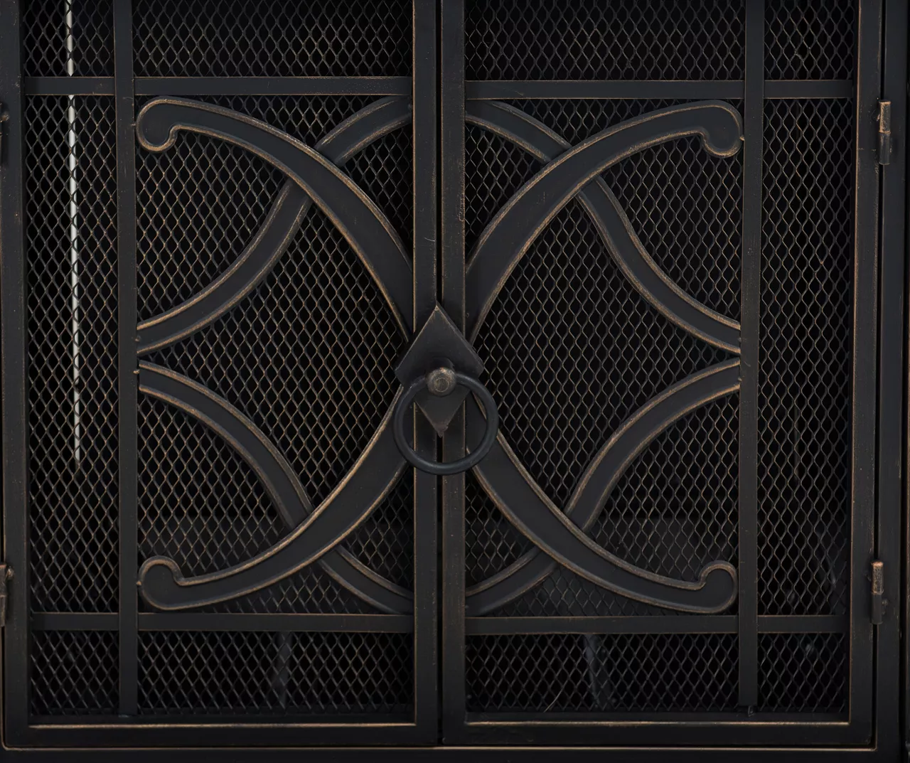 - Powder-coated black steel with bronze highlights