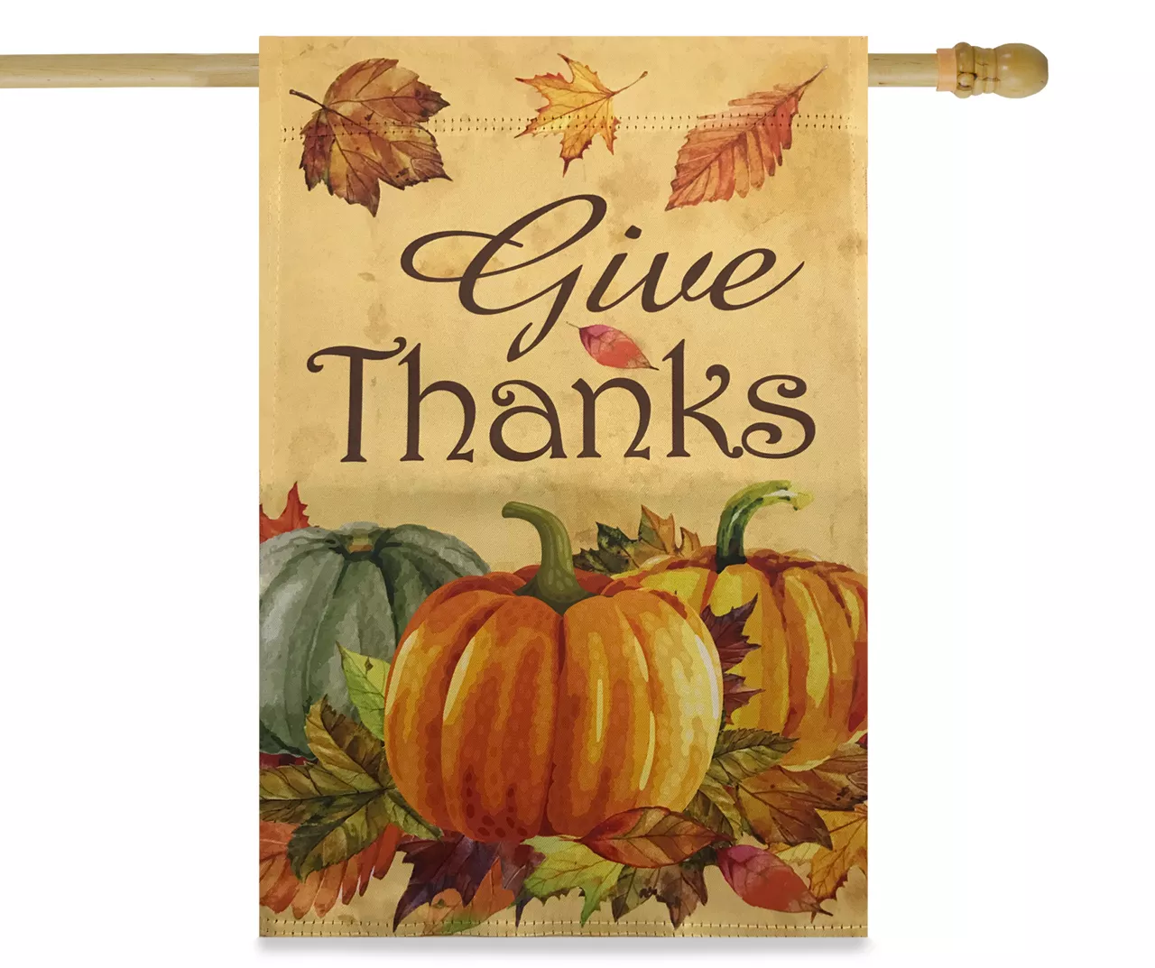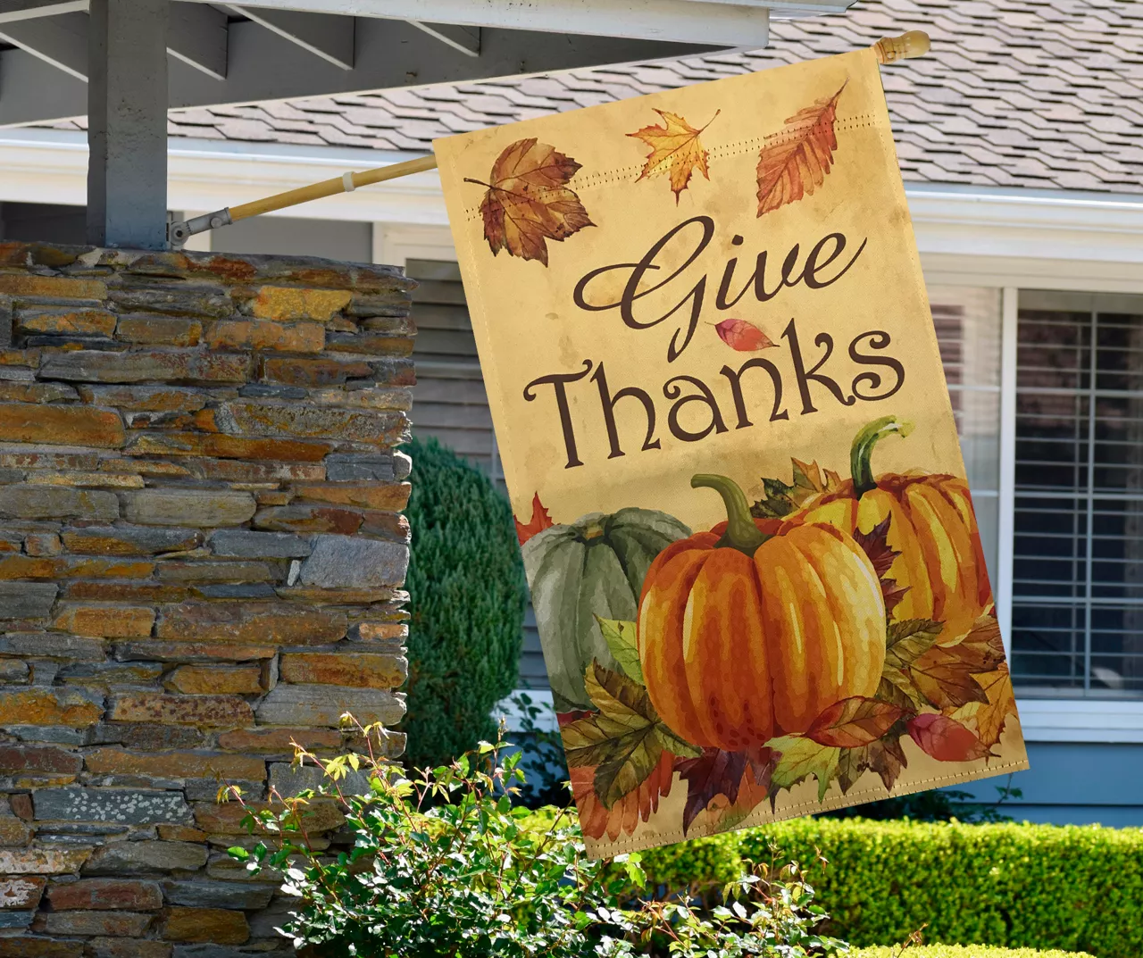 This beautiful house flag is the perfect addition to your autumn décor. It displays the classic signs of the fall and Thanksgiving is sure to inspire joy from all who see it! Makes a great addition to your home or given as a gift to your friends or family.