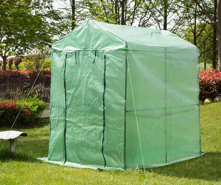 This walk-in greenhouse from Glitzhome is the perfect addition to your garden or backyard. Lightweight and easy to assemble, this greenhouse is designed with special connectors for easy assembly and is made of a green PE covering over a powder-coated steel frame. Featuring an anchor system that secures the greenhouse to the ground with heavy-duty anchors and strong ropes, this greenhouse is perfect for your garden, patio or backyard.