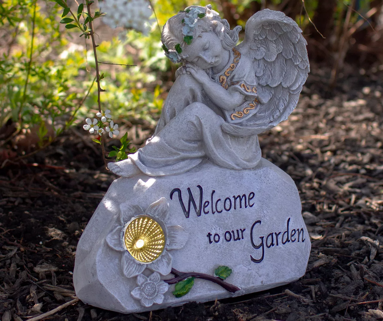 Designed with exquisite craftsmanship, this angel statue guarantees lasting beauty for your outdoor décor. Adding an angel to your outdoor space will bring peace and serenity to all those who admire it. Sure to be a garden focal point, this design will welcome your guests while adding solar lighting when the sun goes down.