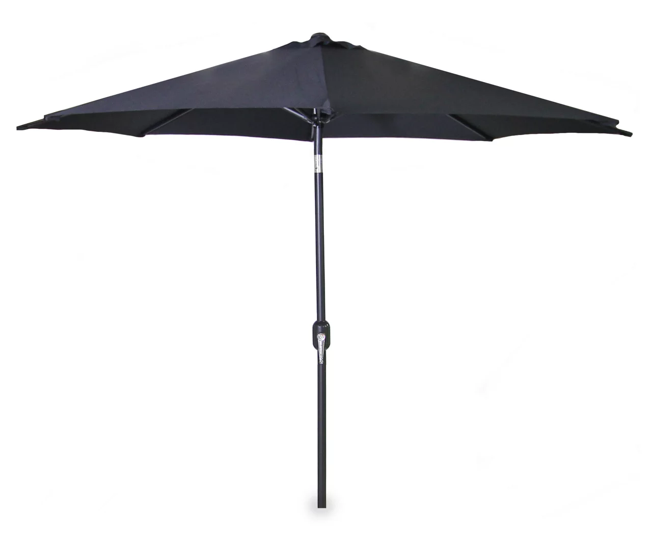 Bring comfort and style to your outdoor space using this wonderful market-style umbrella. Its round canopy is made from fade-, mildew- and stain-resistant polyester fabric in sleek black. Operating by an easy-to-use hand crank and featuring a tilt mechanism, it’s perfect for a patio or deck.
