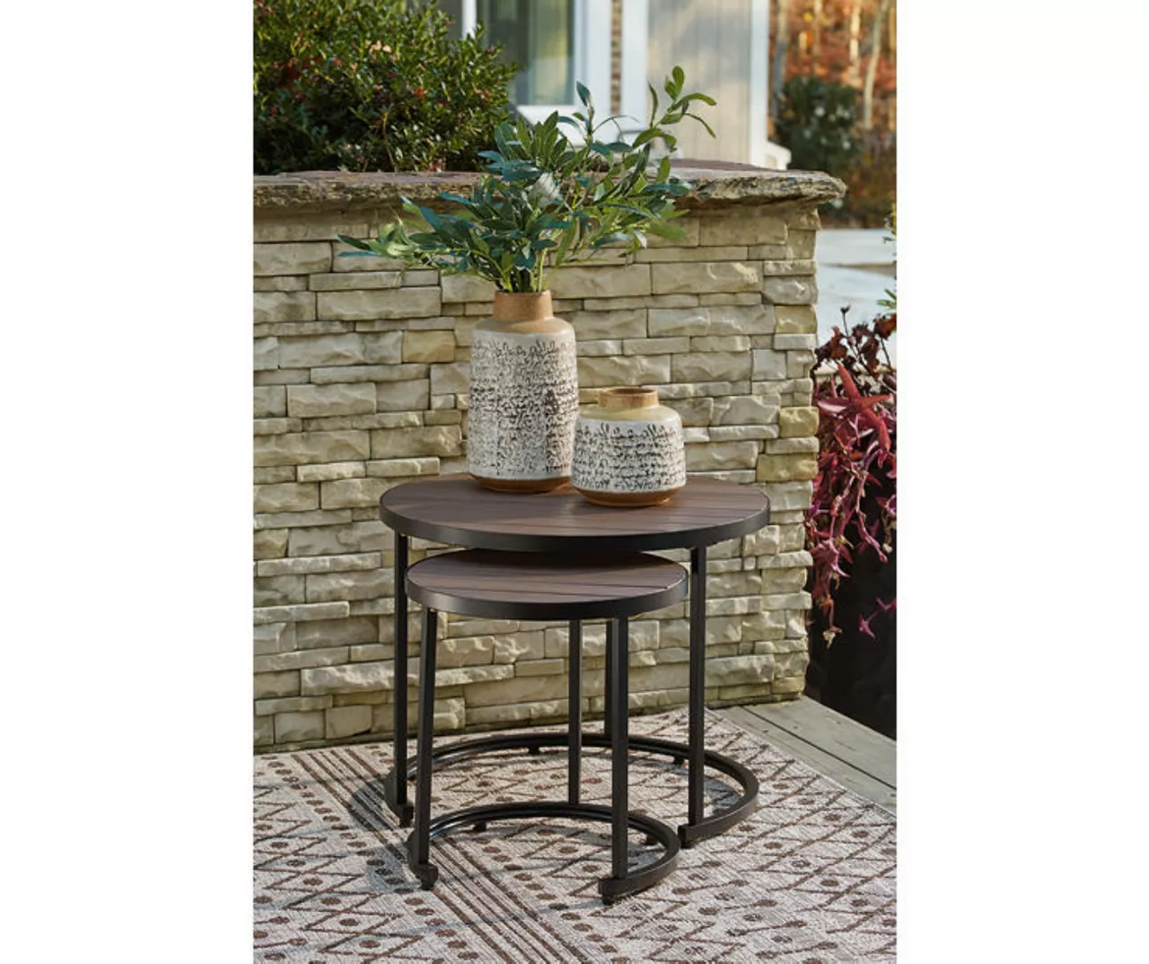 - Includes 2 outdoor nesting side tables