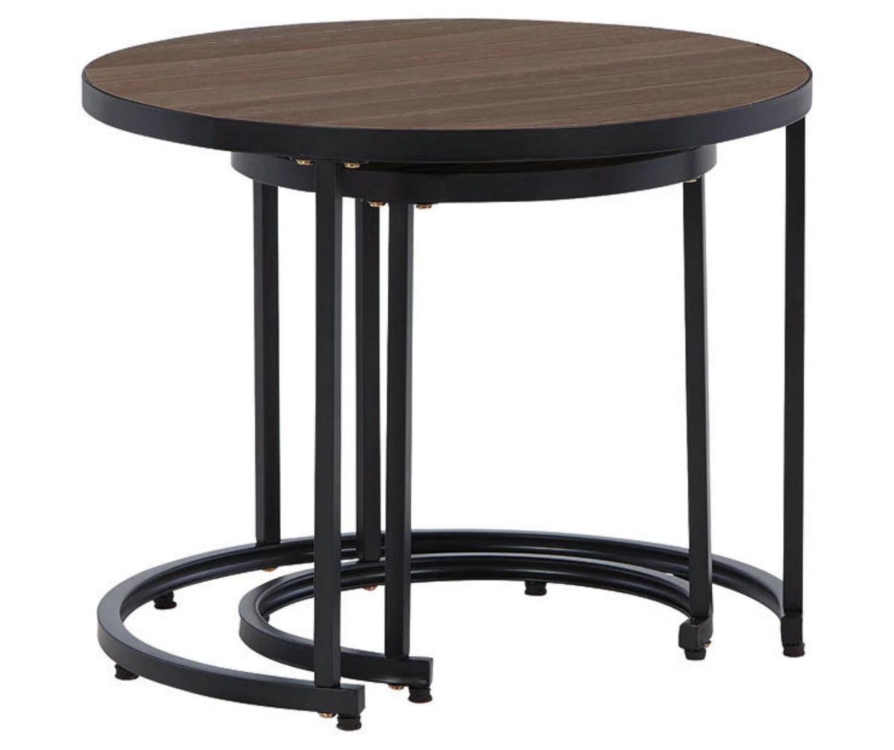 If you love a cool, on-trend look with elements of rustic warmth, you’ll find these nesting end tables beautifully on track. Their black metal bases have the modern angle covered, while wood-look resin tabletops incorporate a homey feel rich with grainy appeal.