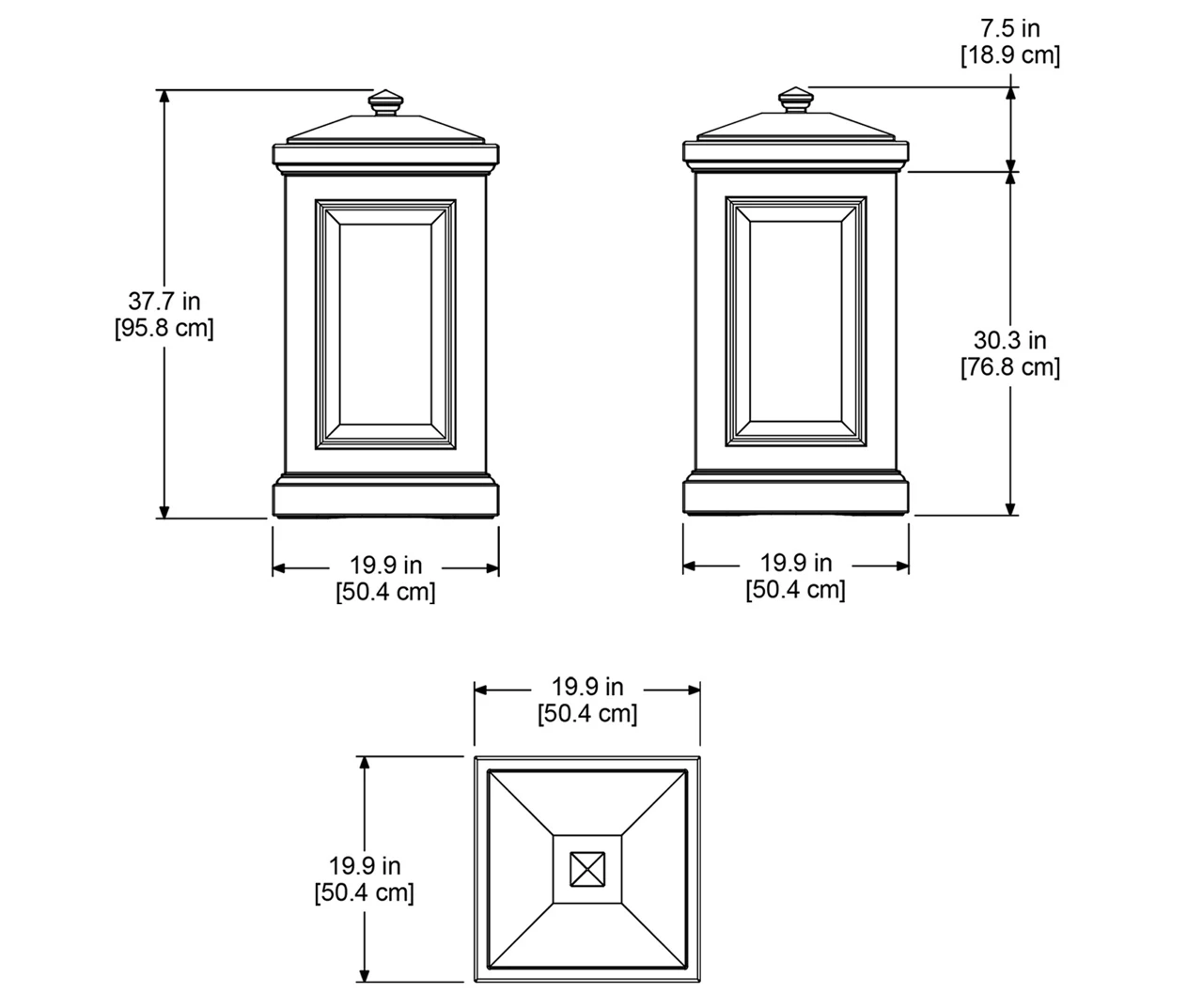 - 20″L x 20″W x 37.8″H