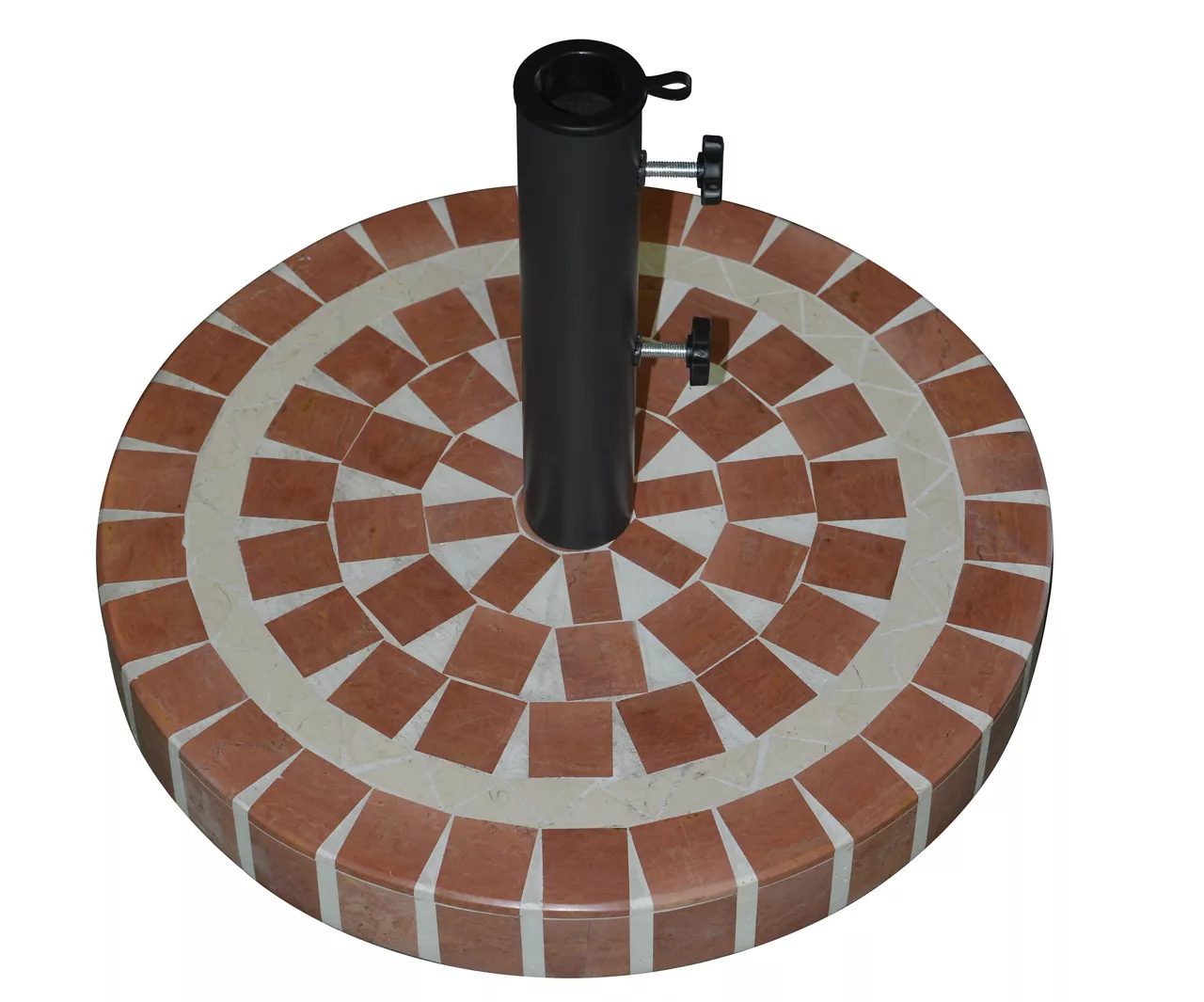 - Round umbrella base safely secures a patio umbrella, holding it firmly in its table or when used as a free-standing base