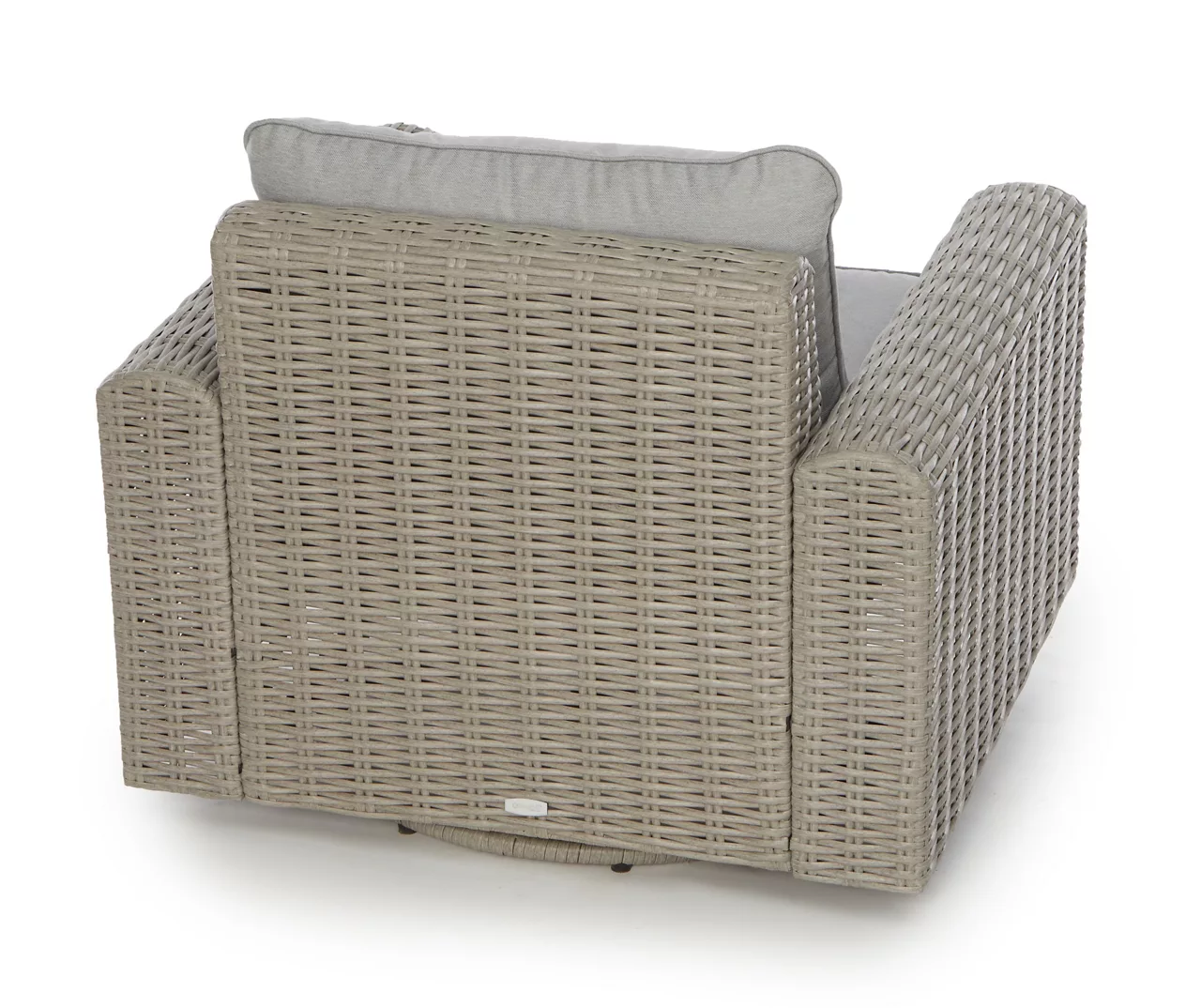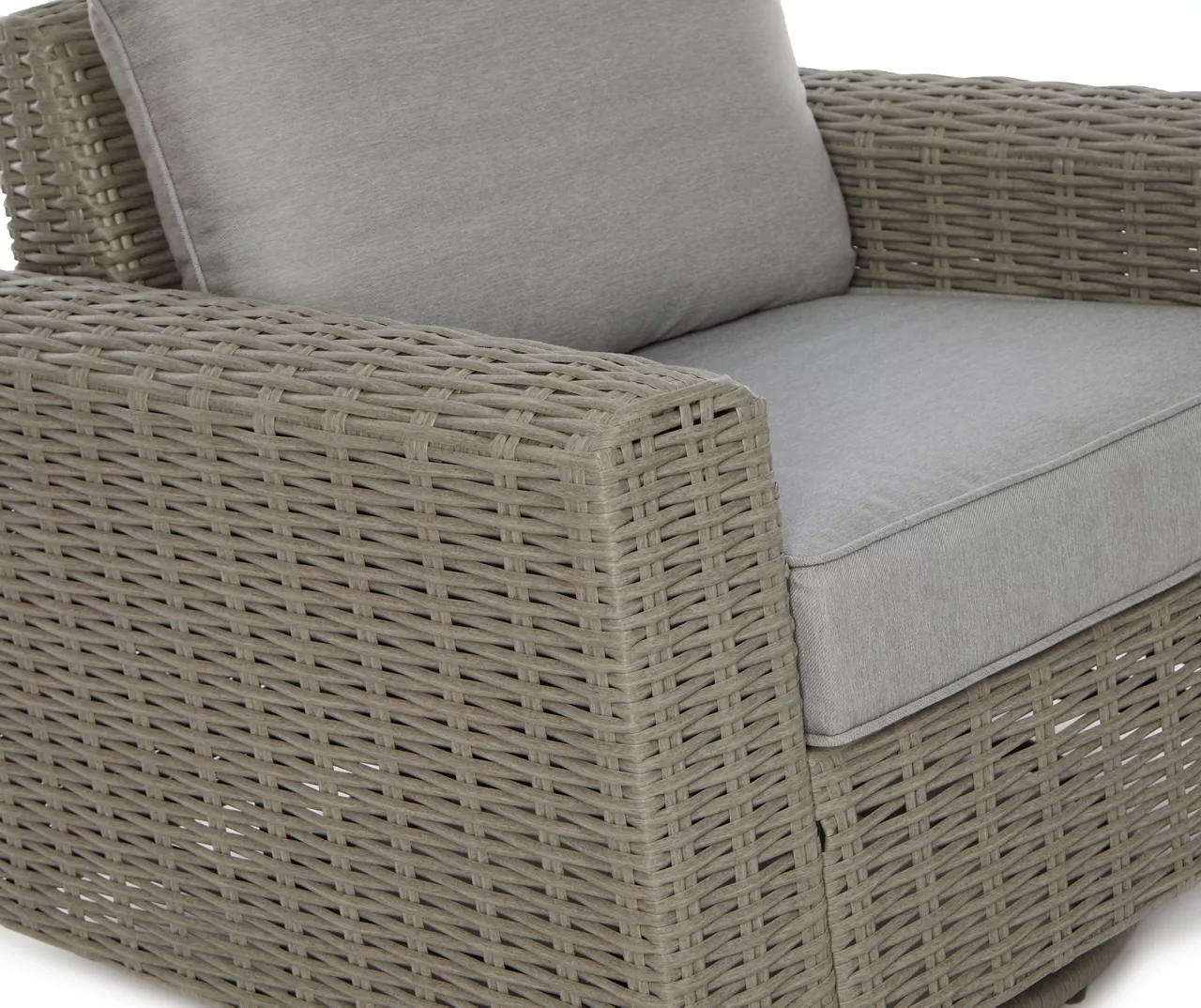 - Oversize deep seating cushions made from fade-resistant olefin fabric in gray
