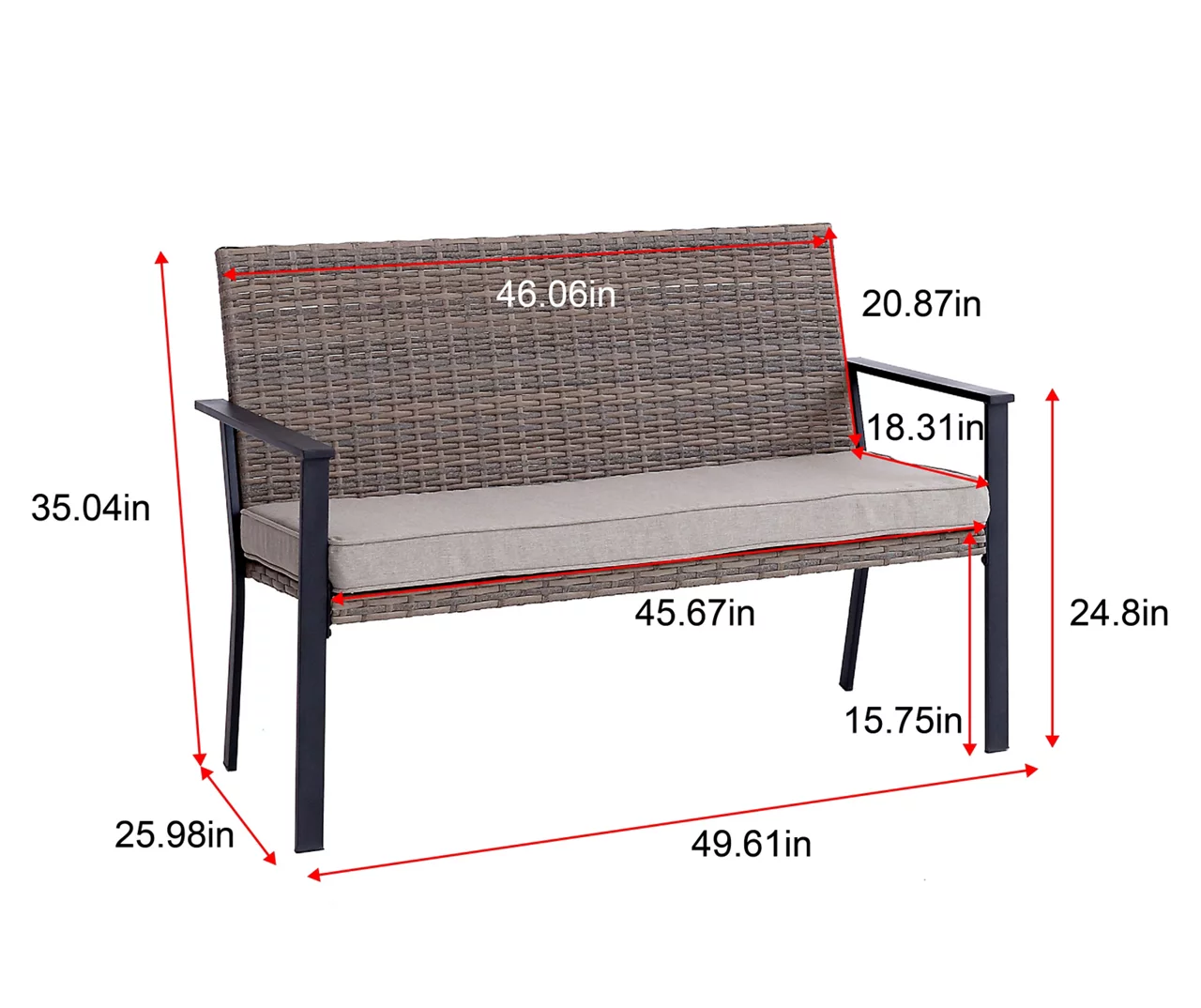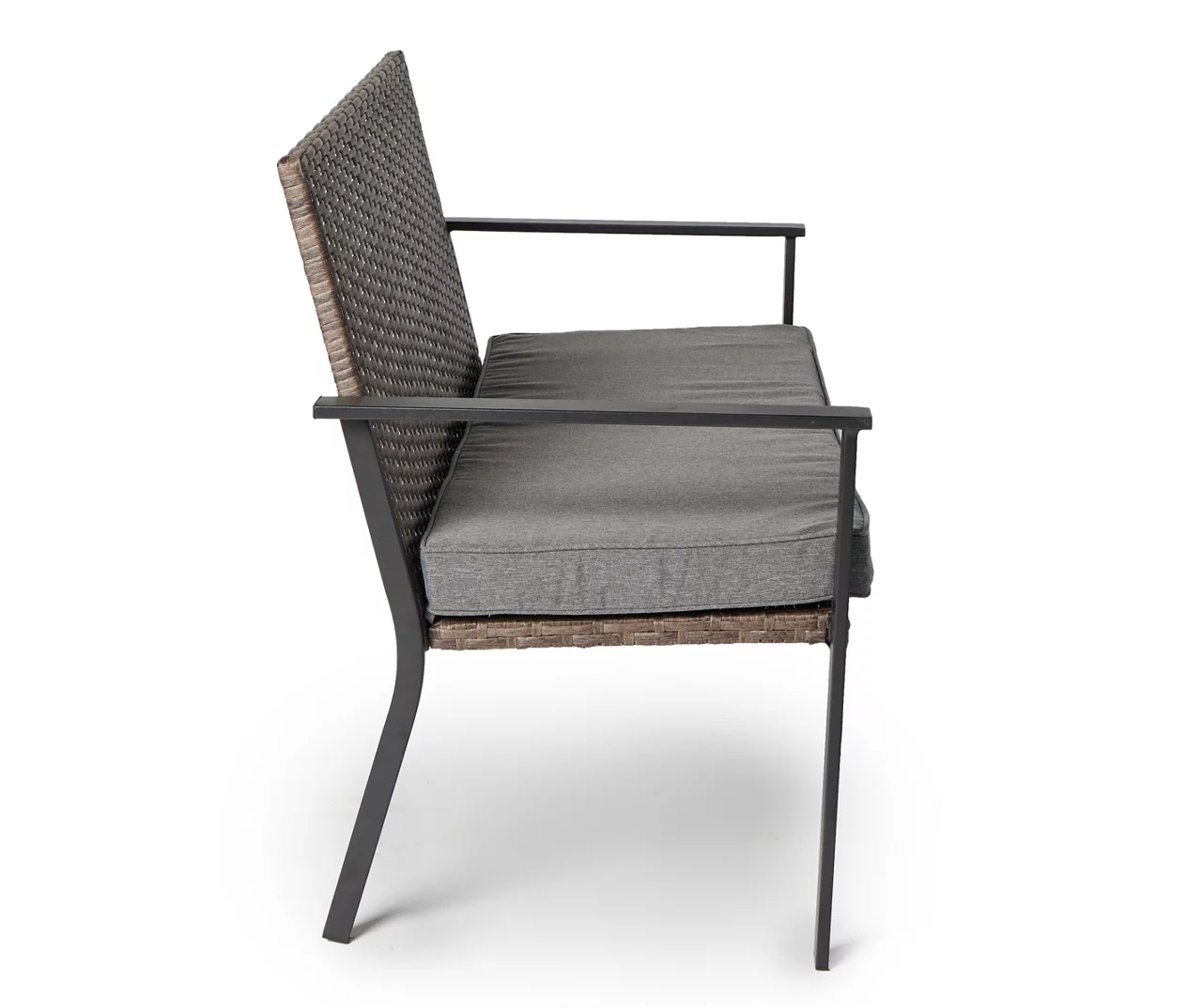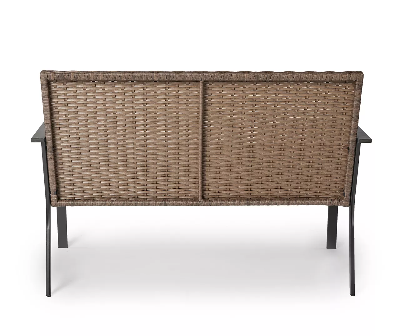 The Yorktown bench from Broyhill brings cozy seating to your favorite outdoor spot. The classic profile features a powder-coated galvanize steel frame for long-lasting beauty as handwoven all-weather wicker covers the seat base and backrest. Complete with an oversize deep seating cushion made from fade-resistant polyester, this bench is a fantastic addition to a patio, deck or backyard.