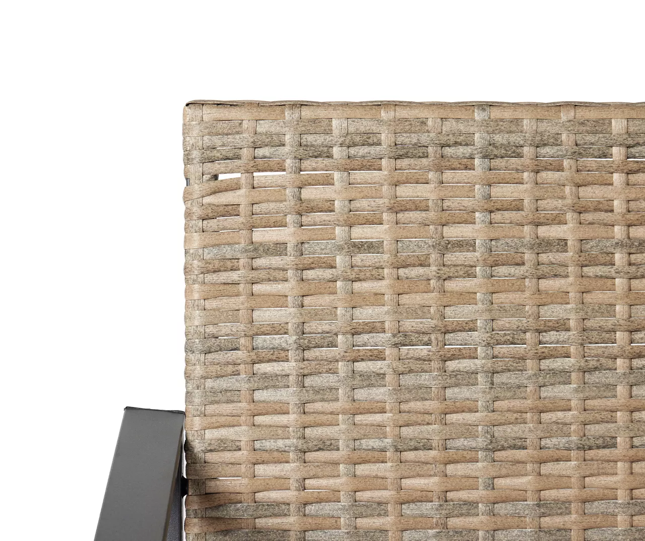 - Handwoven all-weather wicker in a half round design along backrest and seat bottom
