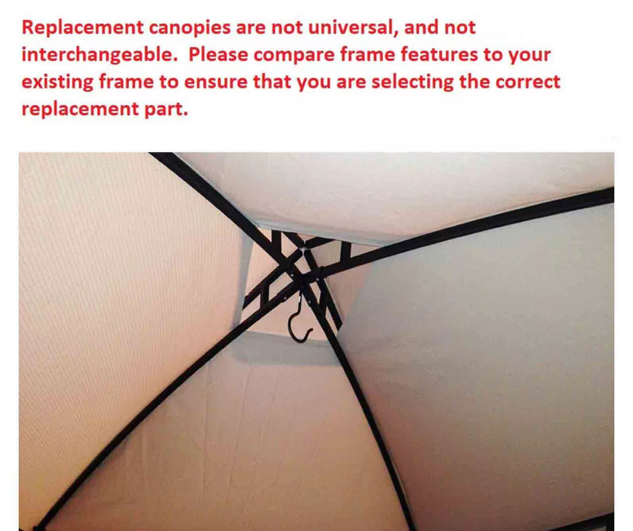 - This replacement canopy top cover will not fit any other gazebo model