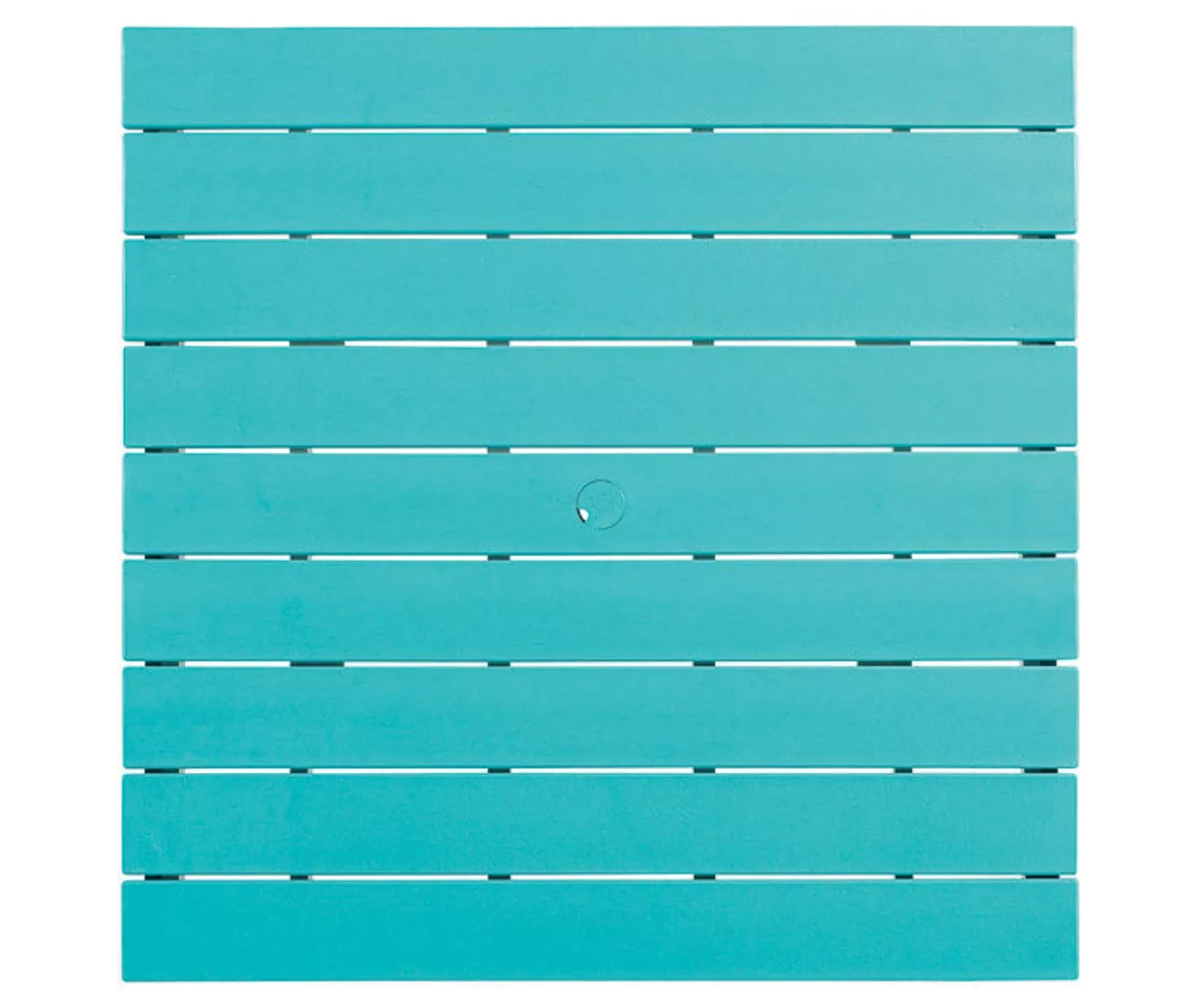 Raise the bar on outdoor living with this dining table. Crafted for style and durability, it caters with a standout two-tone look that pairs a light turquoise and white for twice the interest. The table’s counter height design elevates the aesthetic. An umbrella hole lets you throw some shade on your outdoor living space.