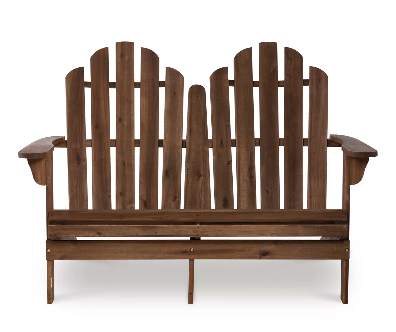 This Adirondack double bench is perfect for adding classic styled seating to your porch or patio area. The bench comfortably sits two with an arm rest on each side. Sturdy and durable, the acorn finish easily complements any home’s style.