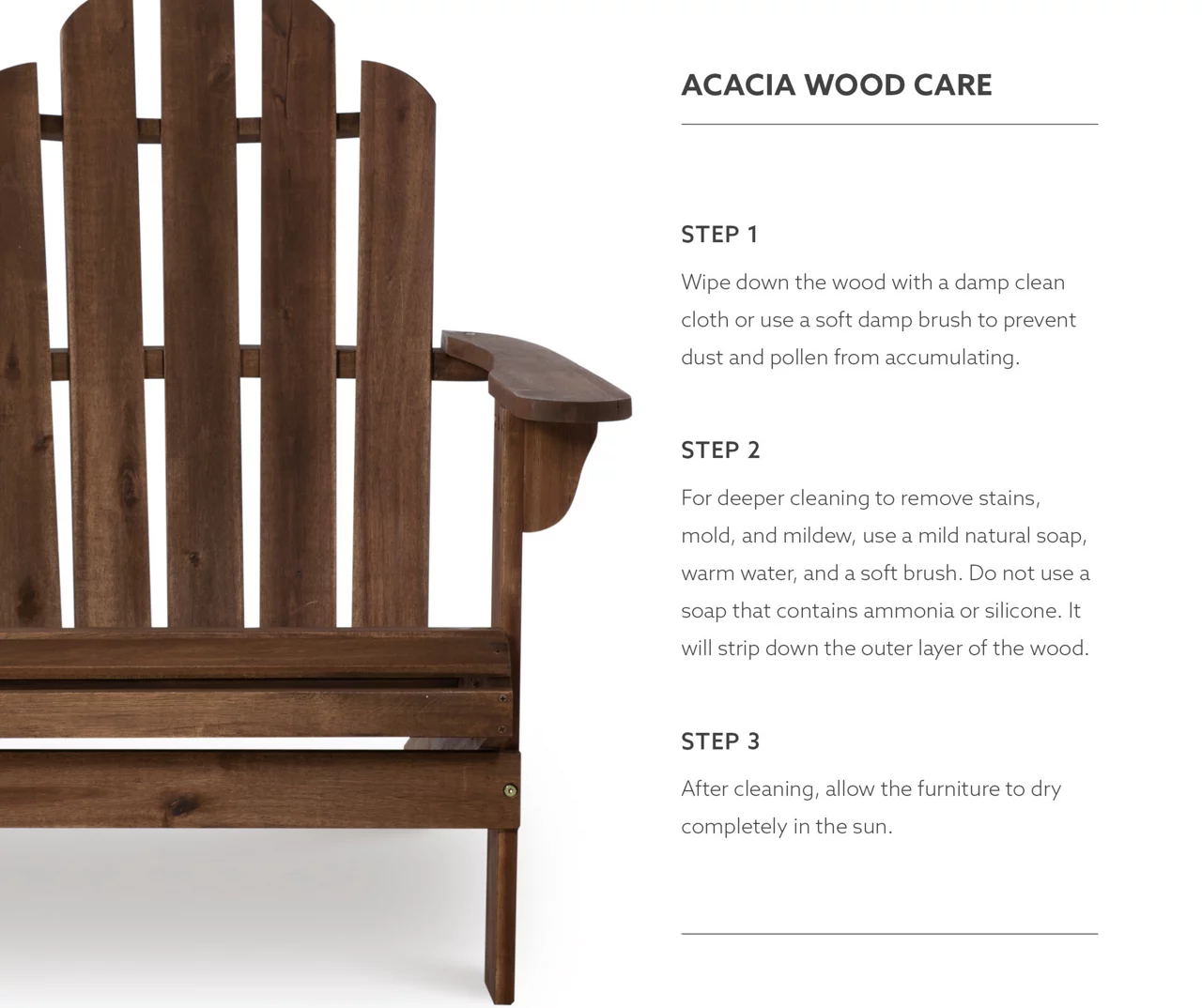 - Sturdy, durable acacia wood build