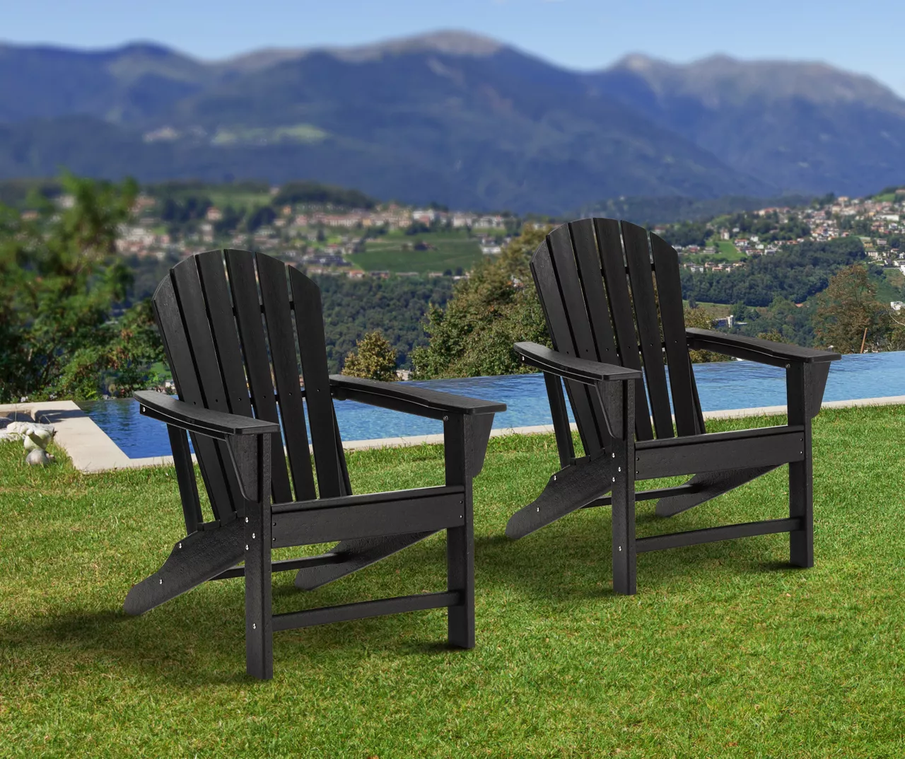 - Includes 2 outdoor Adirondack chairs