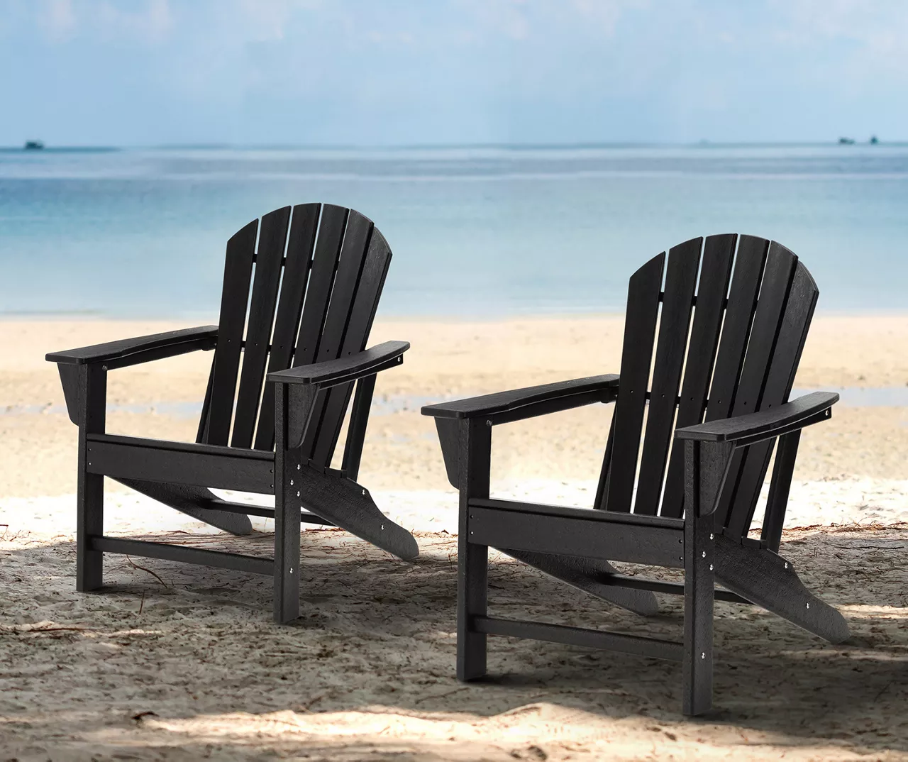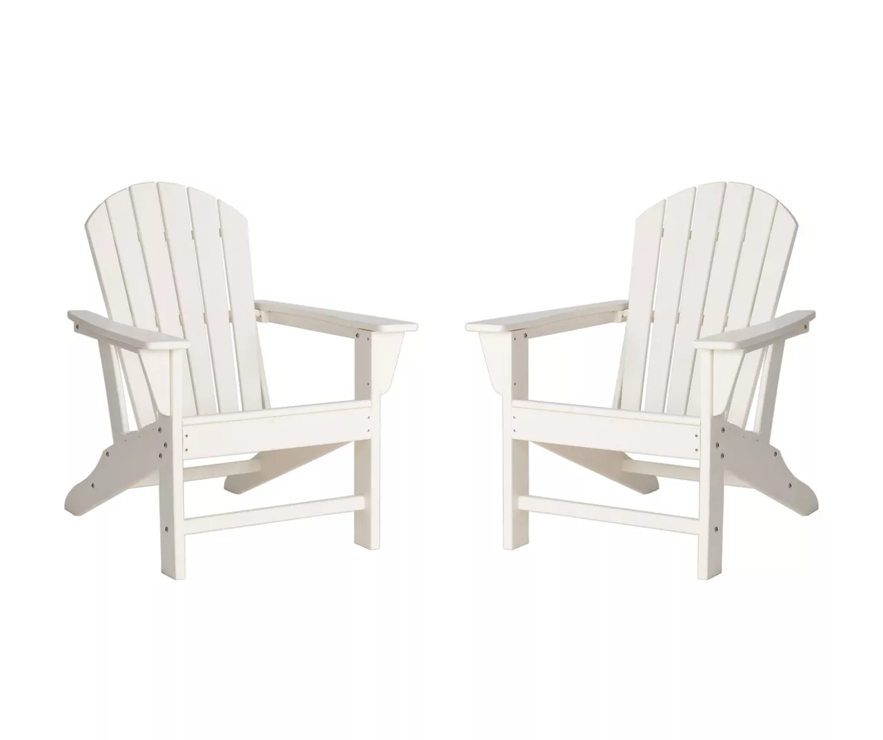 This set of two Adirondack chairs lets you enjoy casual conversations and happy hours with friends in your outdoor space. Each chair is constructed of durable and all-weather resistant high density polyethylene, making them easy to clean with little maintenance. Slanted seating and full backs hug you in comfort as extra-wide paddle armrests are at the ready to hold a drink. This versatile Adirondack chair set is perfect for your patio, porch, poolside, garden, backyard or any other outdoor space!