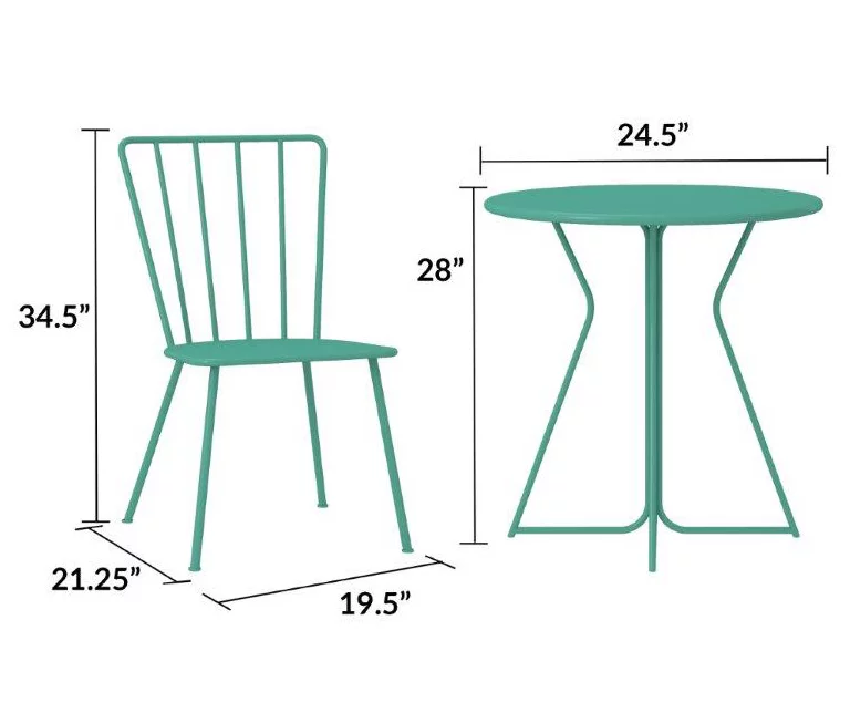 This three-piece Heidi furniture set from Novogratz is the perfect decor for all sorts of outdoor fun. This bistro set is light on its mid-century feet and fits perfectly into smaller outdoor spaces with its slender legs, making it the perfect stylish set for any home. This set is perfect for keeping poolside, using on the patio or entertaining on a balcony.