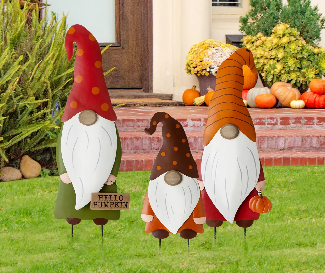 The set of threeĀ metal gnome yard stakes brings a fun sense of charm to your outdoor dĆ©cor. These stakes are a simply delightful way to greet guests on the front porch, or to add a splash of color and character out on the backyard. Enjoy your favorite holiday with these gnome family yard stakesāthey can be used as stakesĀ or just as a piece of general home decor.