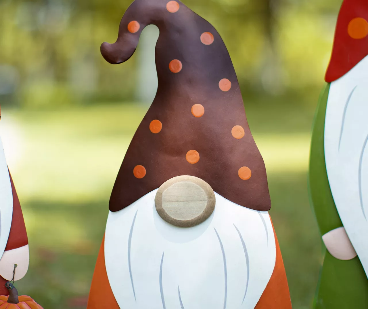 - Charming gnome family designs in green, red and orange