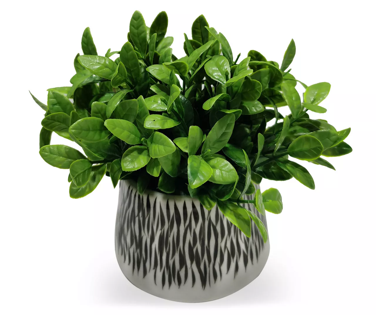 As a symbol of triumph, the broadleaf evergreen laurel plant is a time-honored favorite touch of décor. Anchored in an etched black and white pot, it will bring a modern statement of nature and resilient beauty to your home.