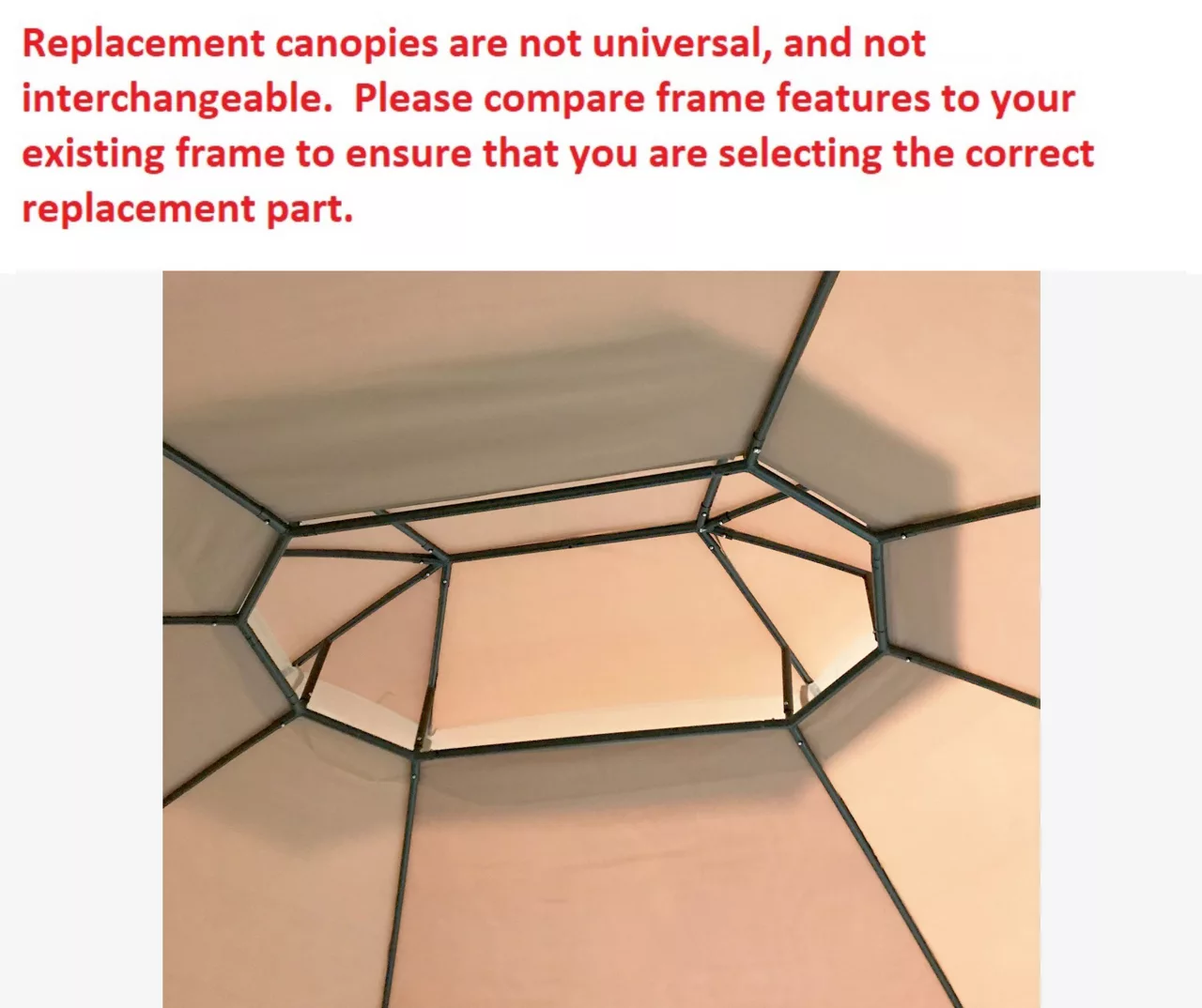 - This replacement canopy top cover will not fit any other gazebo model
