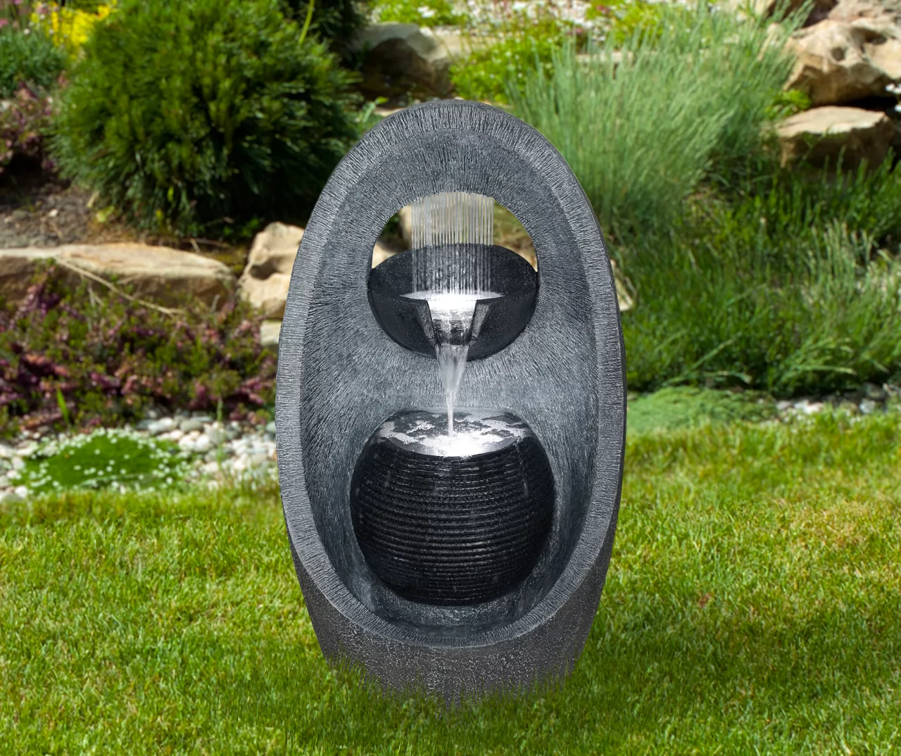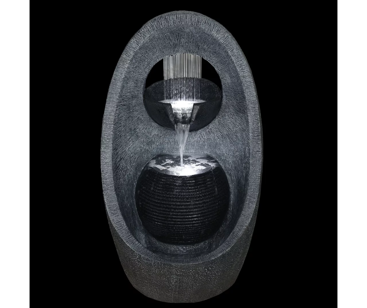 This gorgeous modern water fountain is the perfect addition to your garden. Fountains are a great way to reduce stress provide relaxation improve your focus and promote wellness. Six LED lights surround the water spout in the lowest bowl creating a soft warm glow that illuminates the fountain beautifully at night time. This modern tiered fountain will match any already existing garden décor.