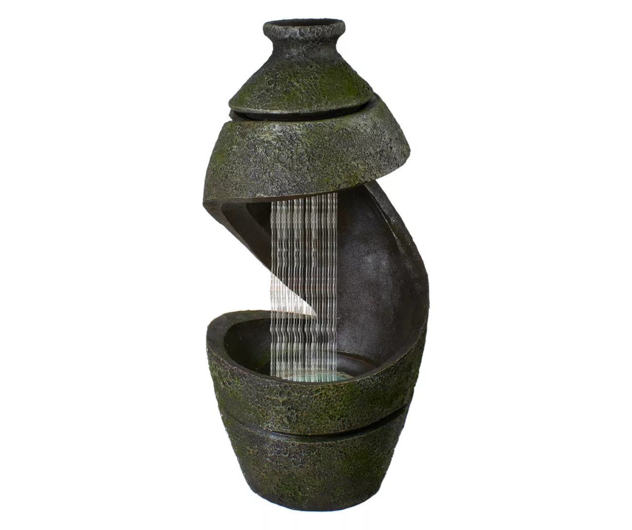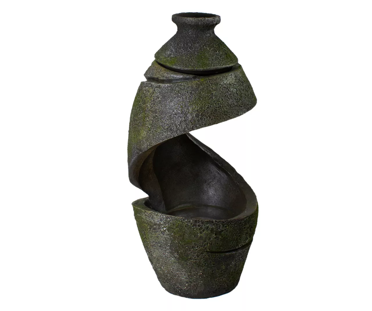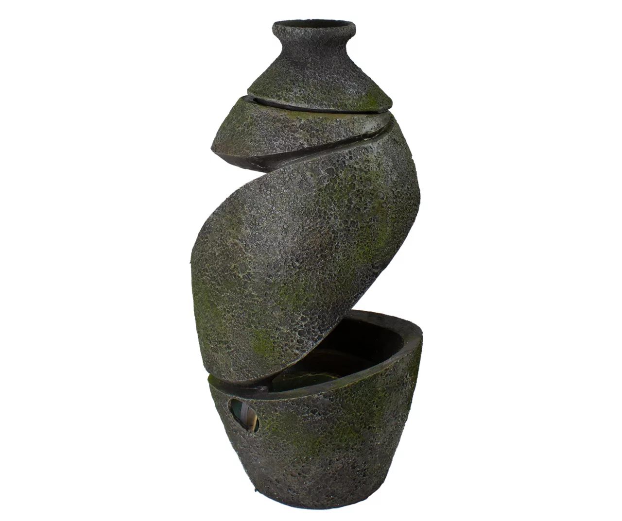 - Old pottery design with mossy texture and cut-out space for waterfall