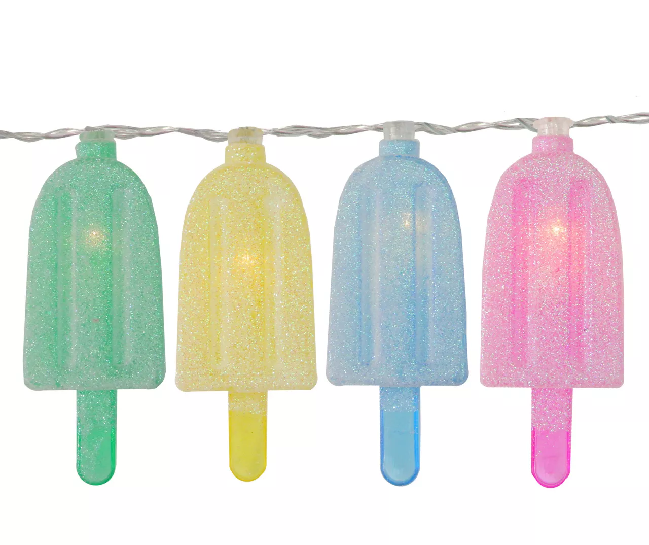 - Ice pop-shaped bulb covers in pastel green, yellow, blue and pink