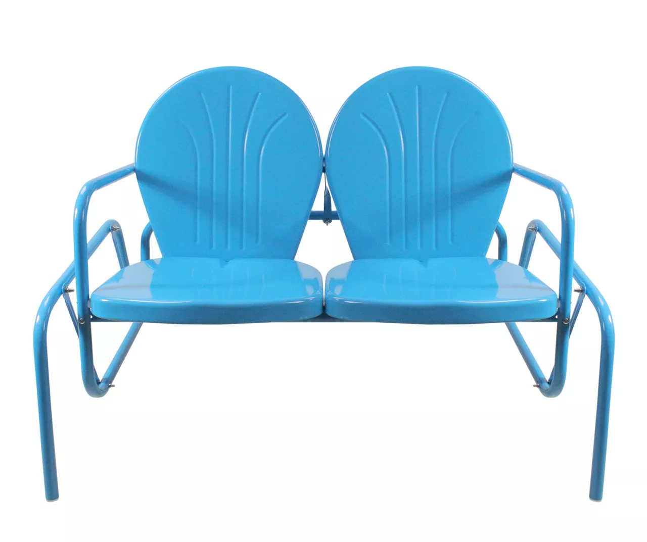 Bring a touch of the ’50s to your yard or porch with this vintage-style metal glider bench. With its weather-resistant powder-coated finish, you will have years to enjoy this classic piece. Perfect for enjoying a glass of wine on the patio with family and friends or a good book by yourself.