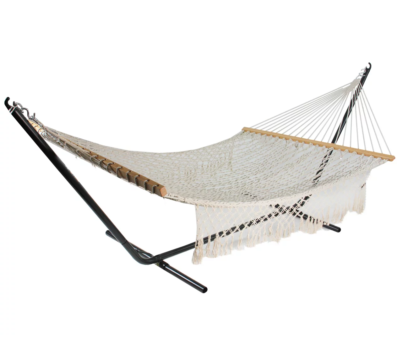 Relax in style with this portable tree hammock. A comfy addition to your outdoor space. Perfect for hanging between trees on your balcony or in a hammock stand.