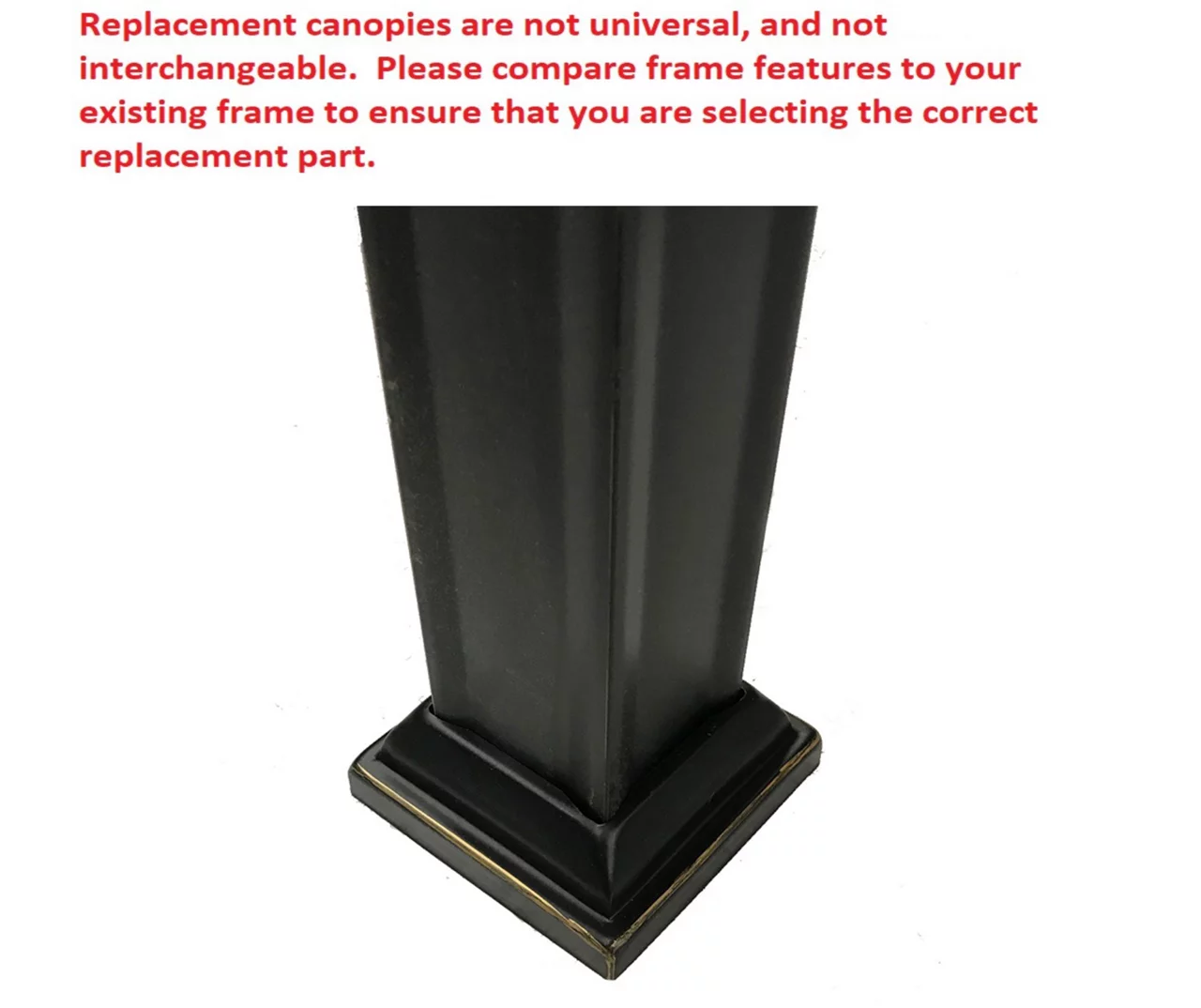 - Refer to pictures in image gallery to help identify the correct replacement part for your frame
