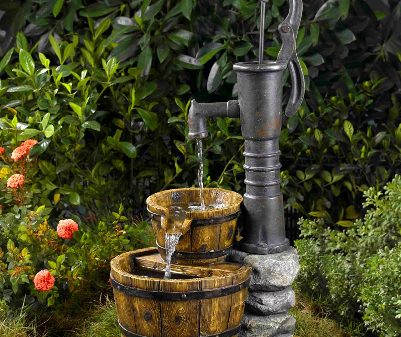 - Includes water fountain and pump