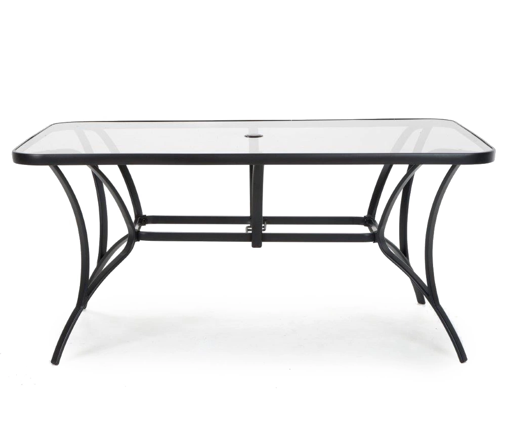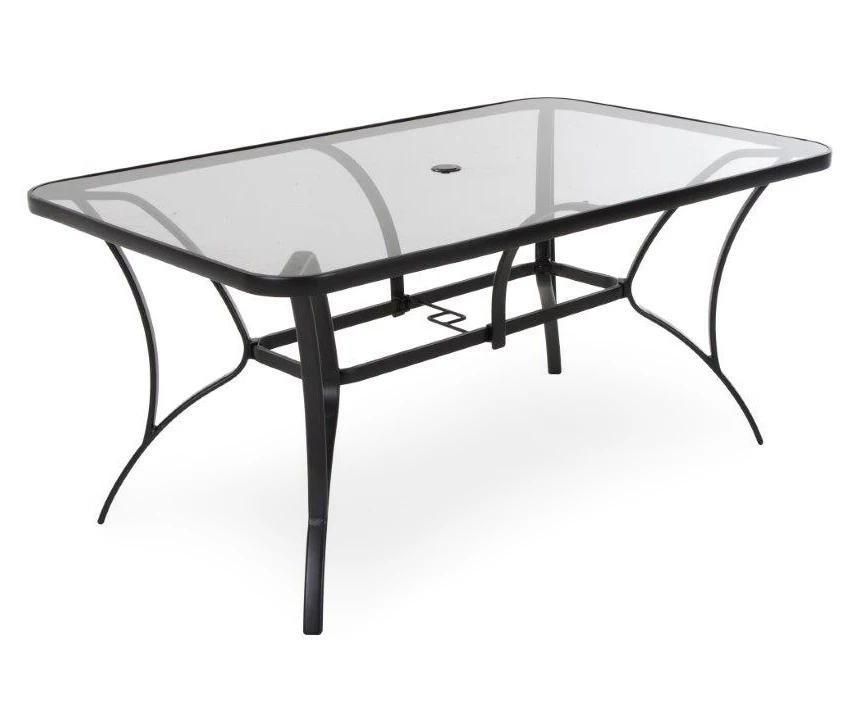 The Cosco Paloma steel dining table lets you share an outdoor meal with friends and family. Featuring a classic design with charcoal gray hues, this table will bring style to your outdoor space. The tempered glass top table is large and includes an umbrella opening (umbrella sold separately) for those bright, sunny days. Invite your friends over for a meal and enjoy this Cosco Paloma dining table.