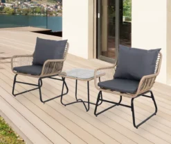 Santa Cruz 3-Piece Rattan Cushioned Patio Chair & Side Table Set