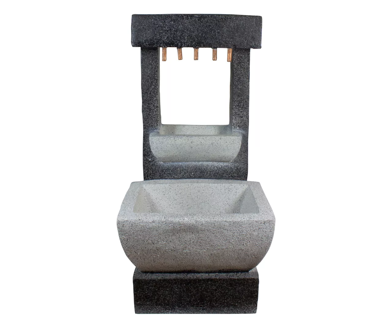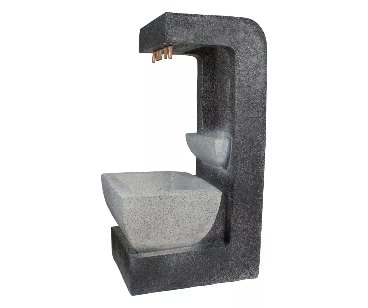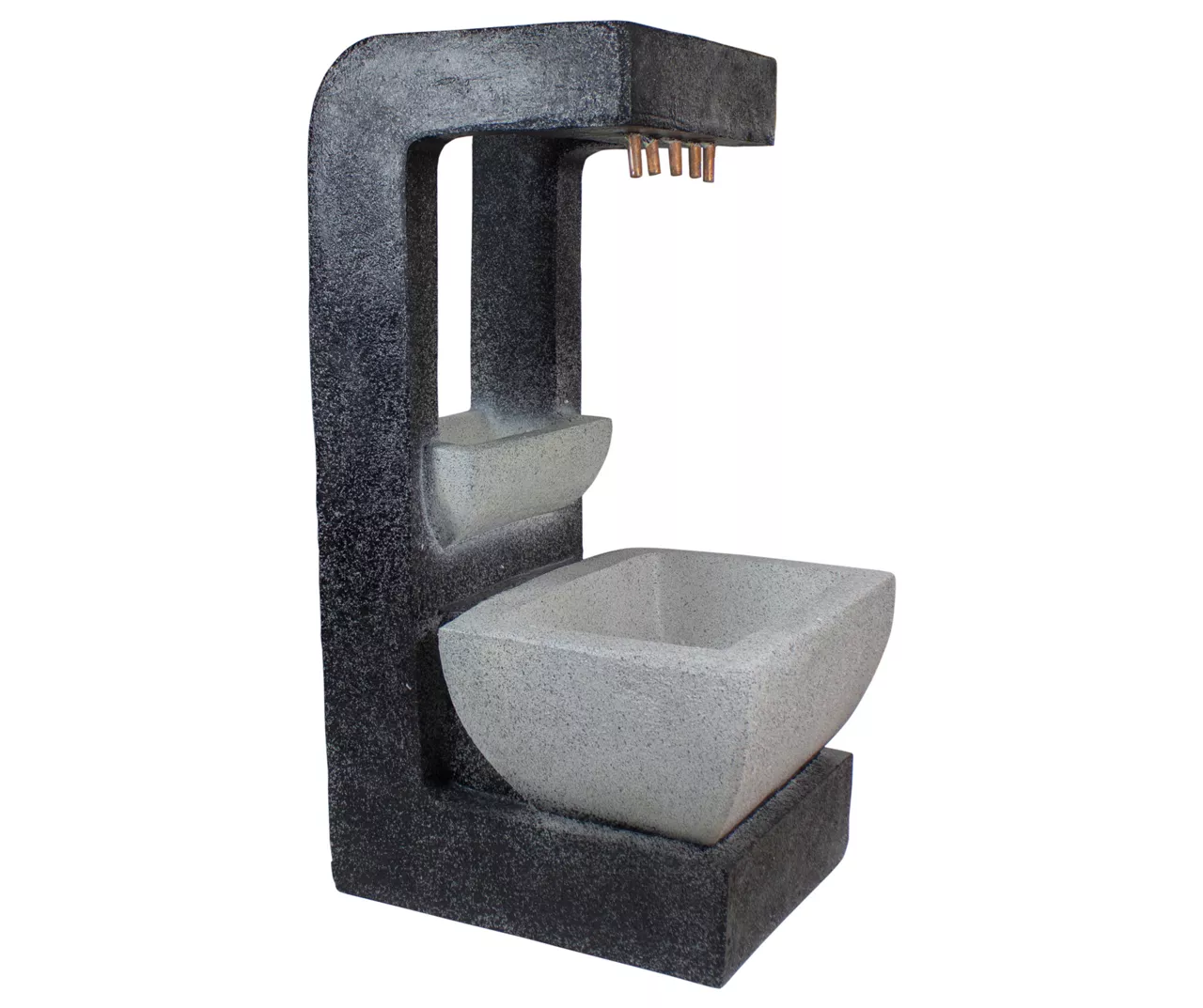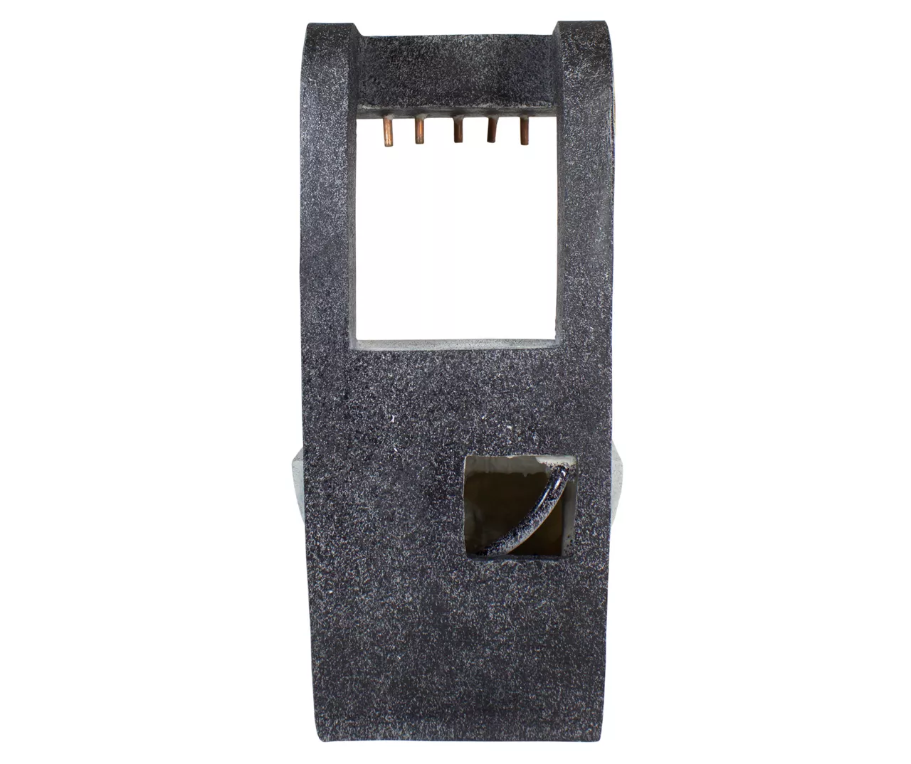 This modern-style water fountain provides a tranquil and soothing addition to your indoor or outdoor living areas. Relax to the sounds of the soft natural water flow as it trickles down through the fountain. Truly a unique water feature this piece is richly detailed and sure to be the topic of conversation.