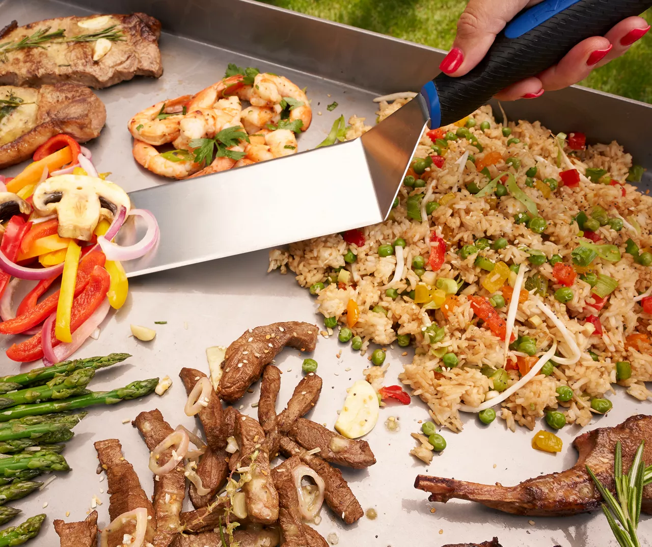 - Rounded edges prevent scratching on griddle surface