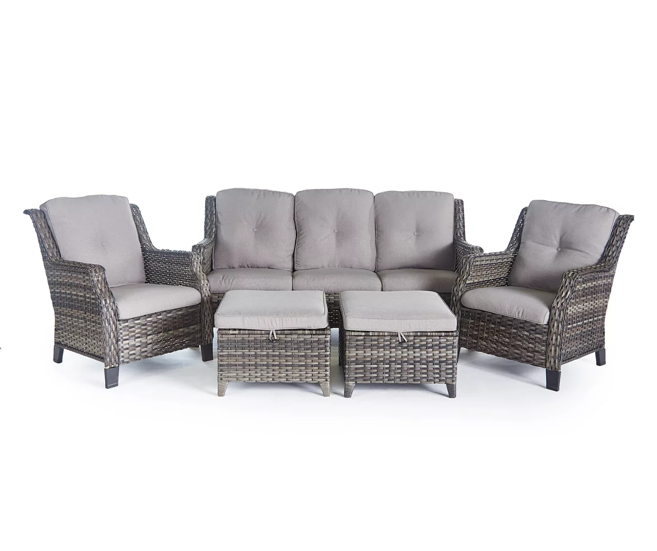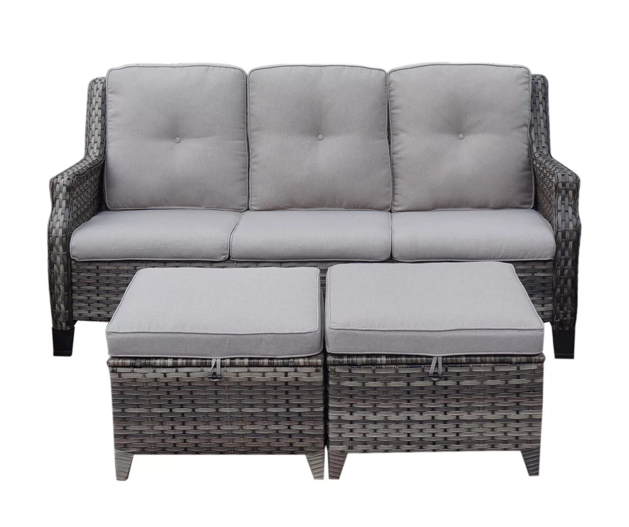 - Includes outdoor sofa with cushions and 2 ottomans with cushions