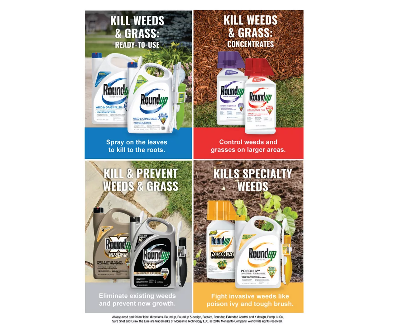 - Kills existing weeds and grass to the root