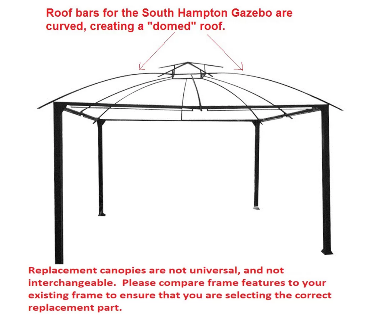 - This replacement canopy top cover will not fit any other gazebo model