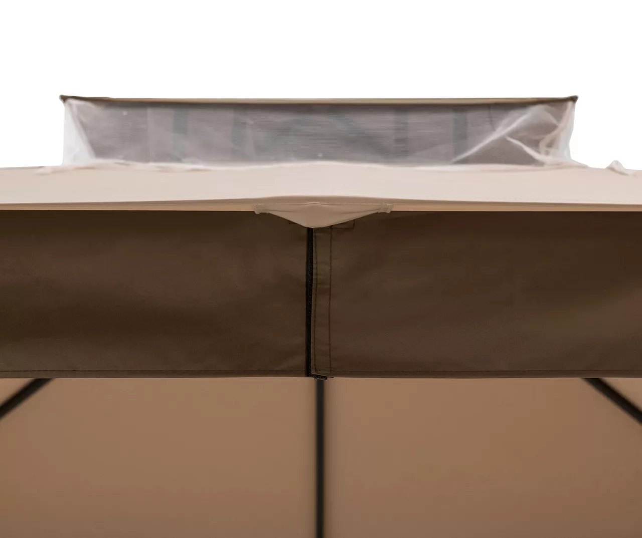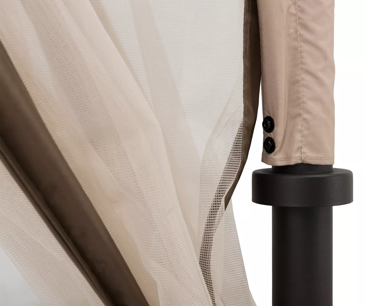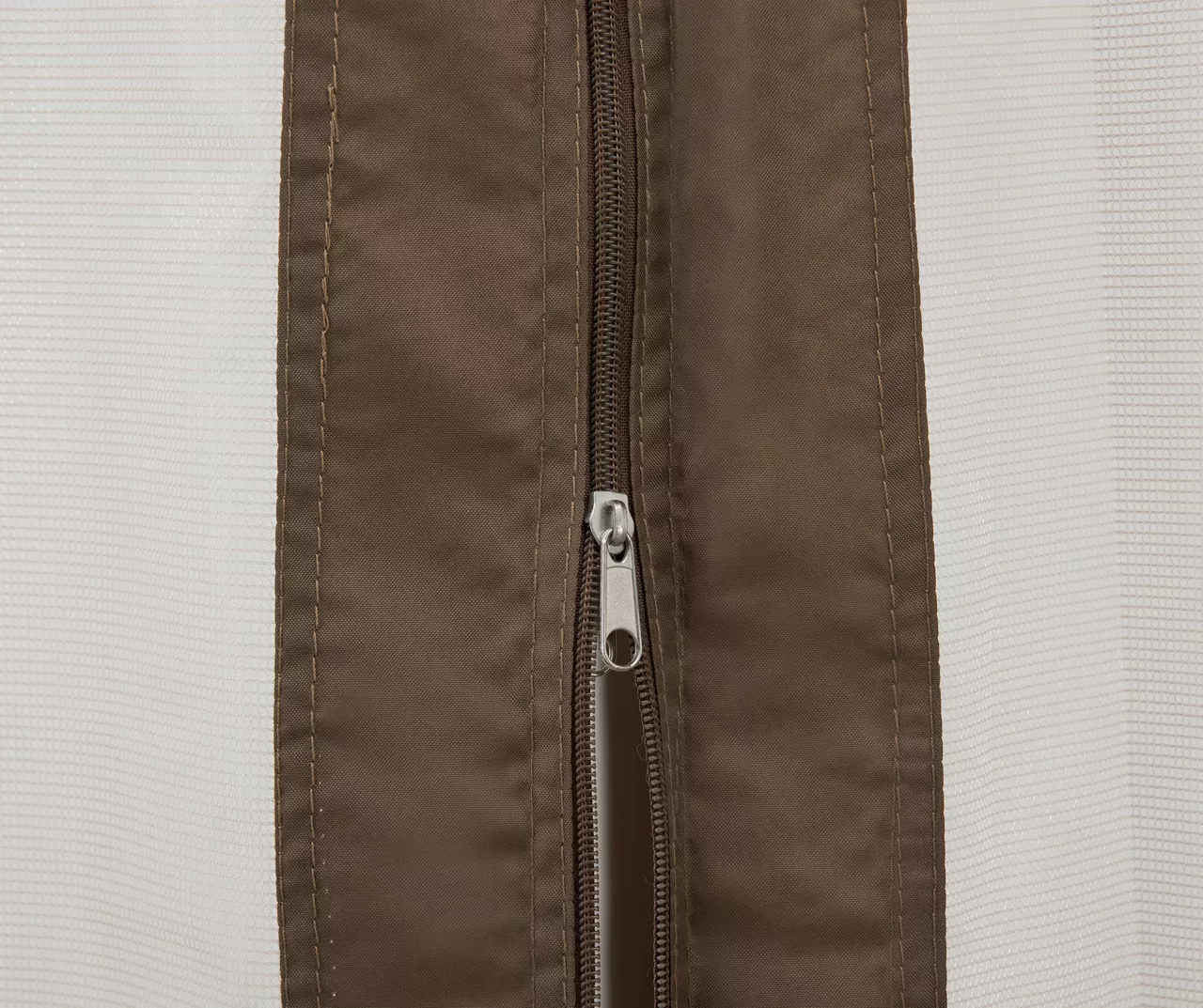 - Tan and brown weather-resistant fabric and screen